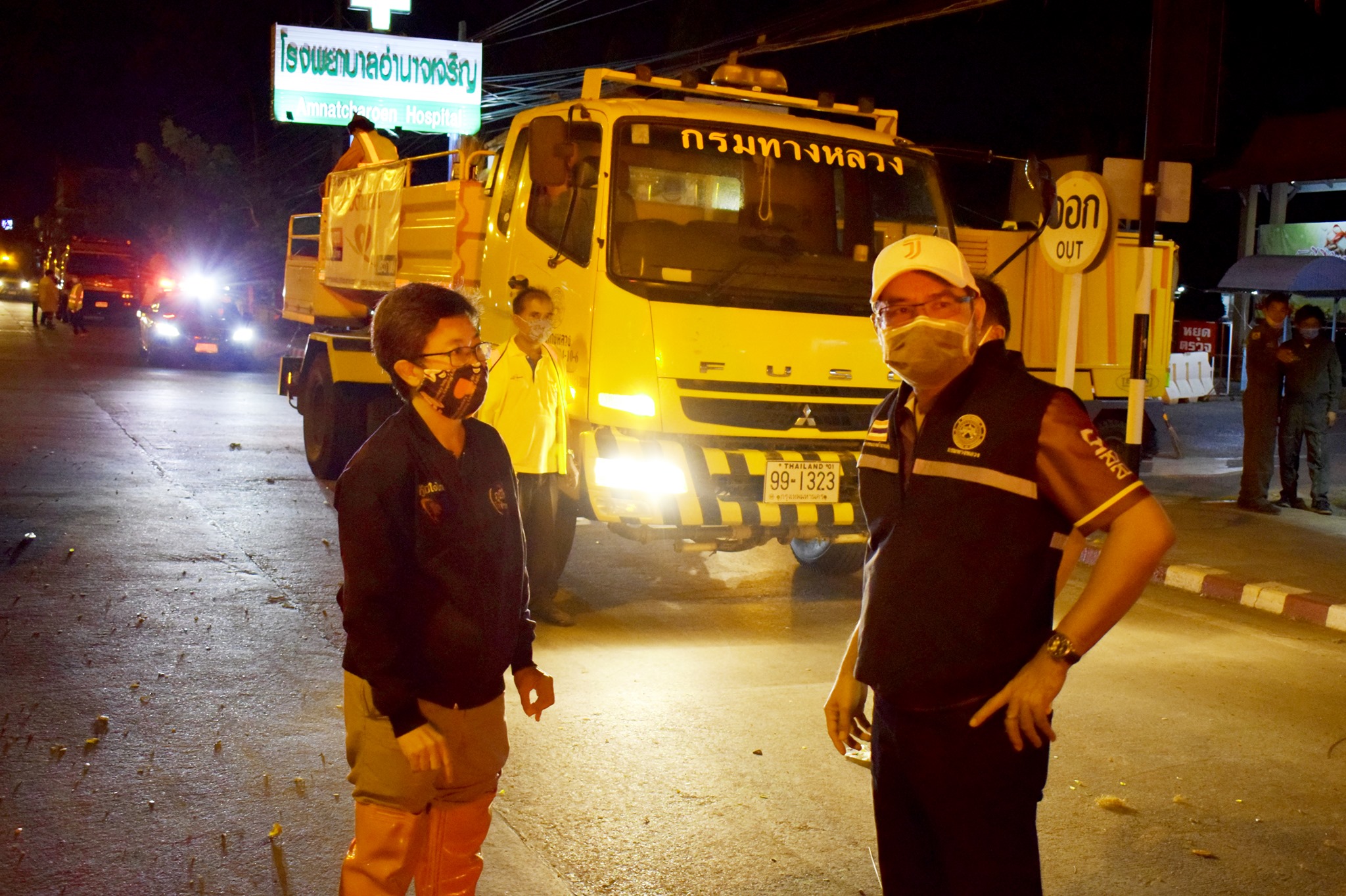 โดย นายพิพัฒน์ อาจมีแก้ว ผู้อำนวยการแขวงทางหลวงอำนาจเจริญ นายพิชัย กาญจนสิงห์ หัวหน้าหมวดทางหลวงอำนาจเจริญ นำเจ้าหน้าที่บูรณาการร่วมกับแขวงทางหลวงชนบทอำนาจเจริญ เทศบาลเมืองอำนาจเจริญตำรวจทางหลวงอำนาจเจริญ และกลุ่มภูมิใจไทอำนาจ ปฏิบัติการล้างถนนและฉีดพ่นน้ำยาฆ่าเชื้อเพื่อป้องกันการแพร่ระบาดไวรัสโควิด-19 ในทางหลวงหมายเลข 202 ตอน สะพานคลองลำเซ - ปทุมราชวงศา ระหว่าง กม.317+950 - 319+800