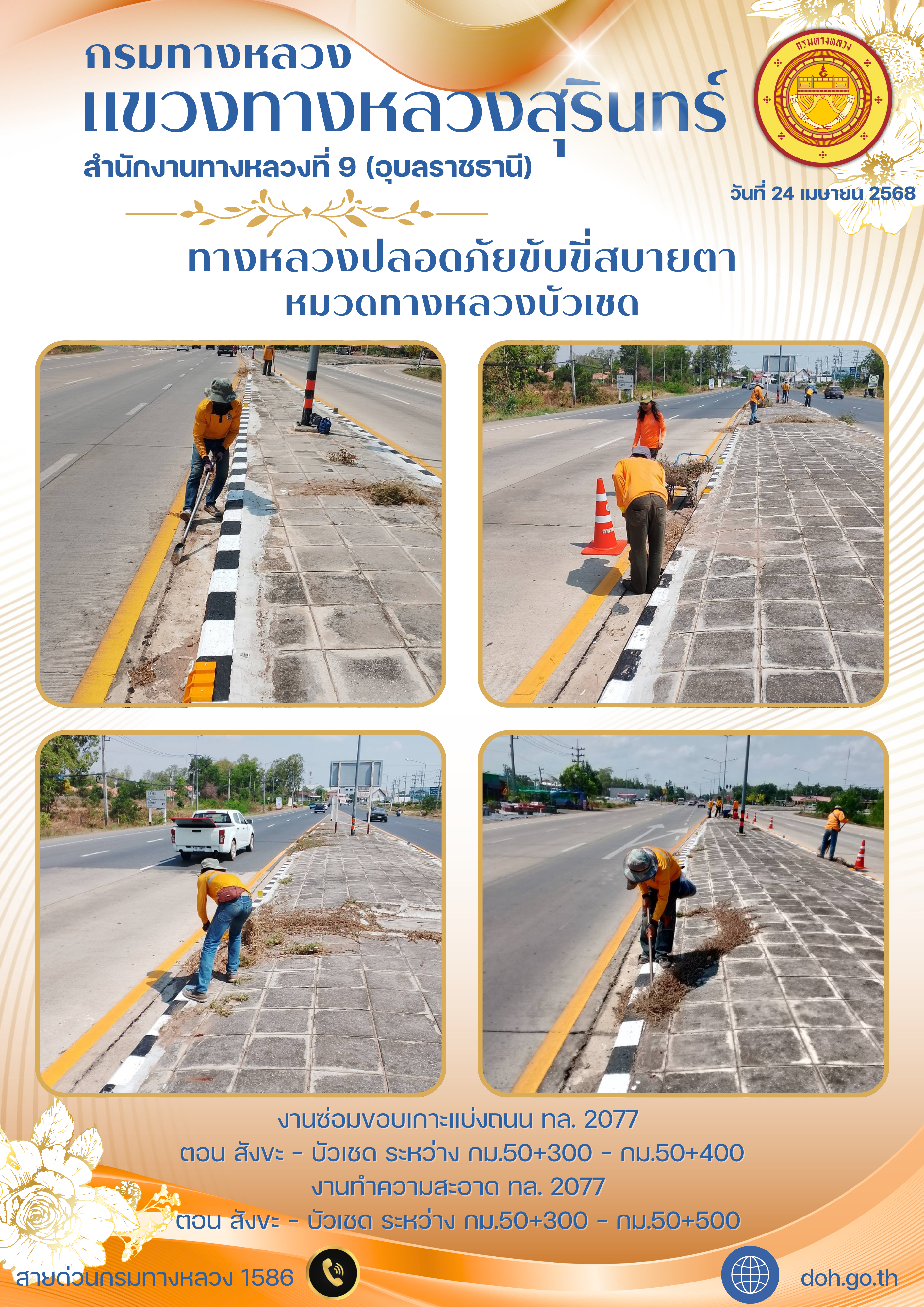 ทางหลวงปลอยภัย ขับขี่สบายตา 24 เมษายน 2568 |