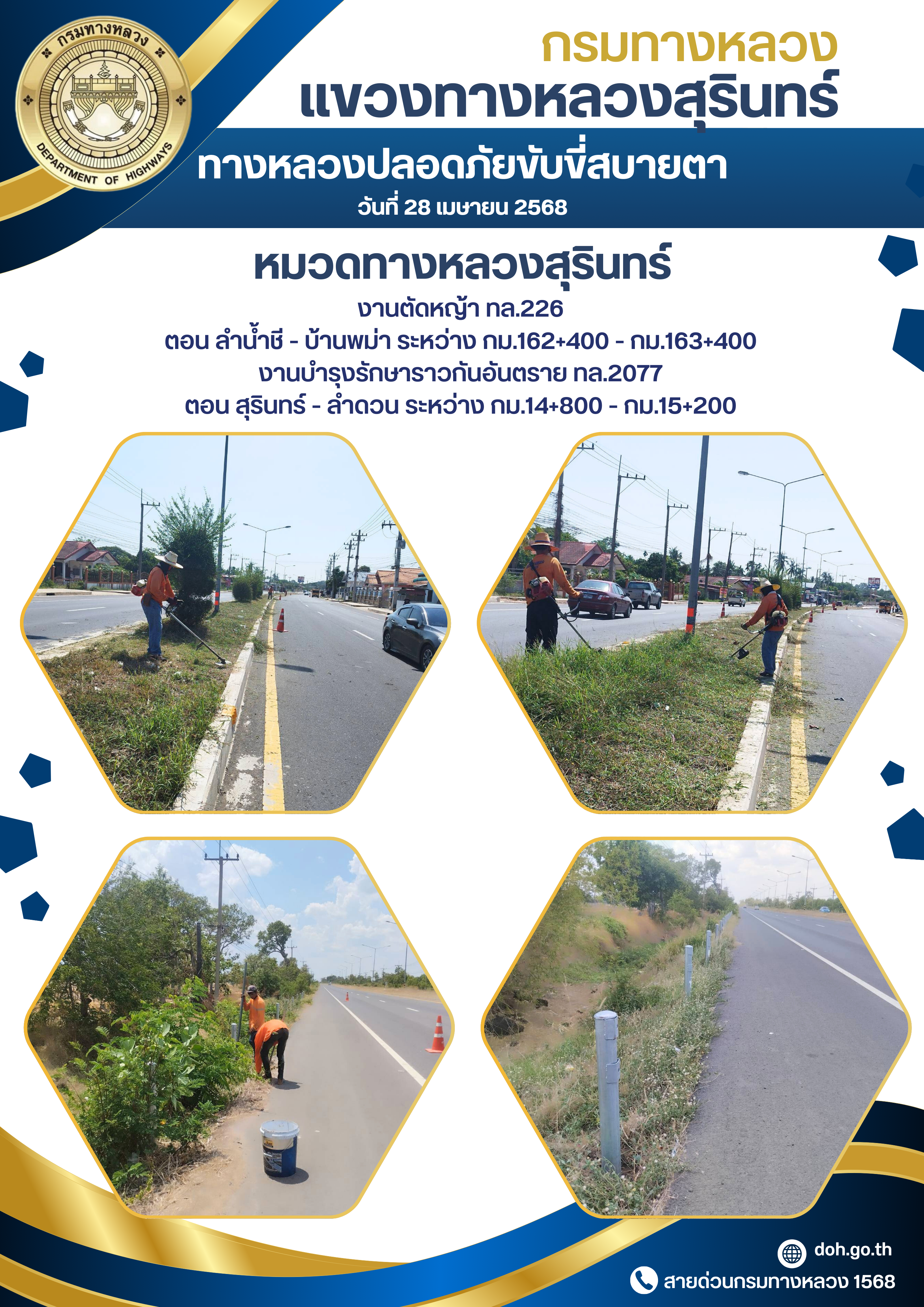 ทางหลวงปลอยภัย ขับขี่สบายตา 28 เมษายน 2568 |
