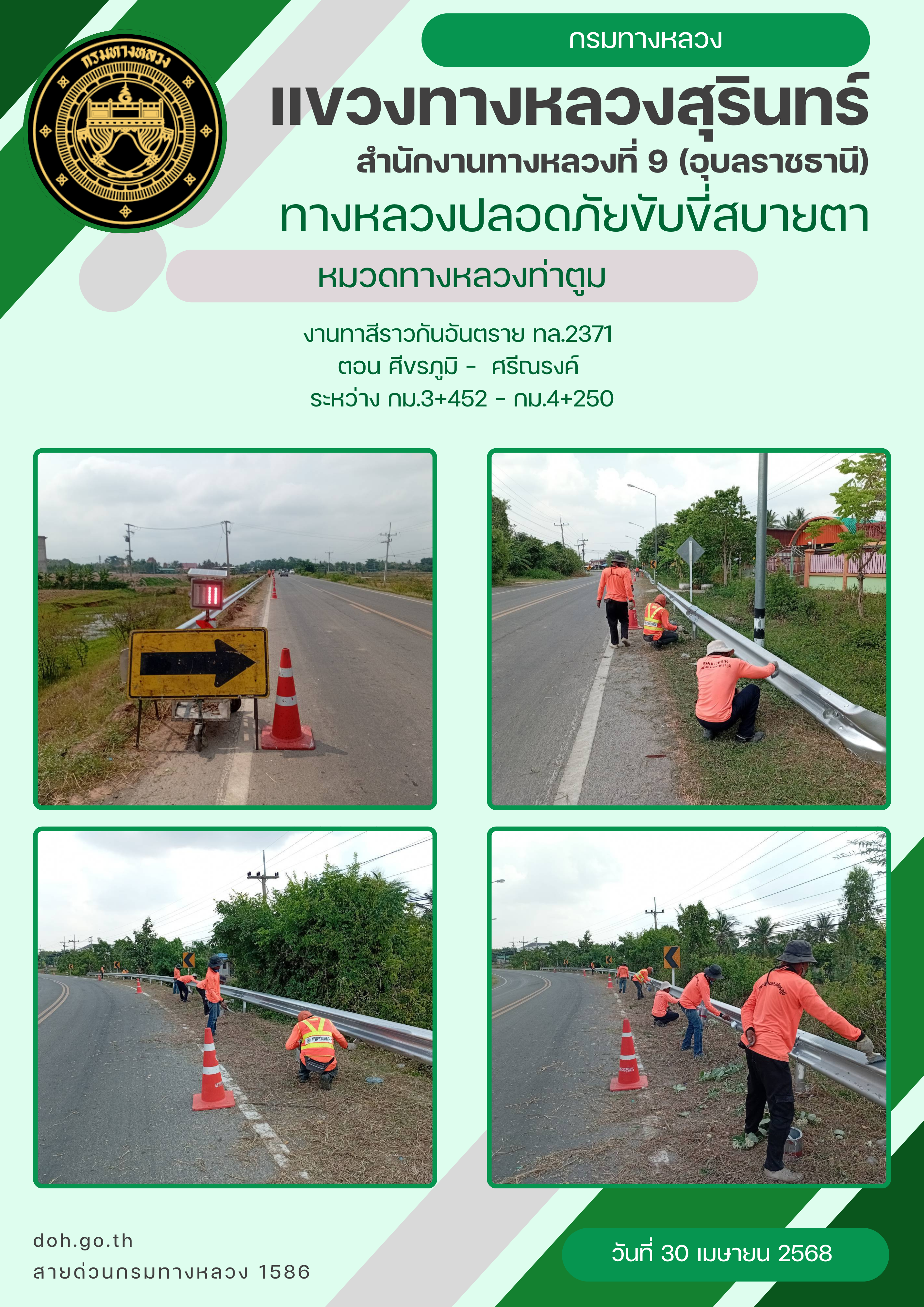 ทางหลวงปลอยภัย ขับขี่สบายตา 30 เมษายน 2568 |