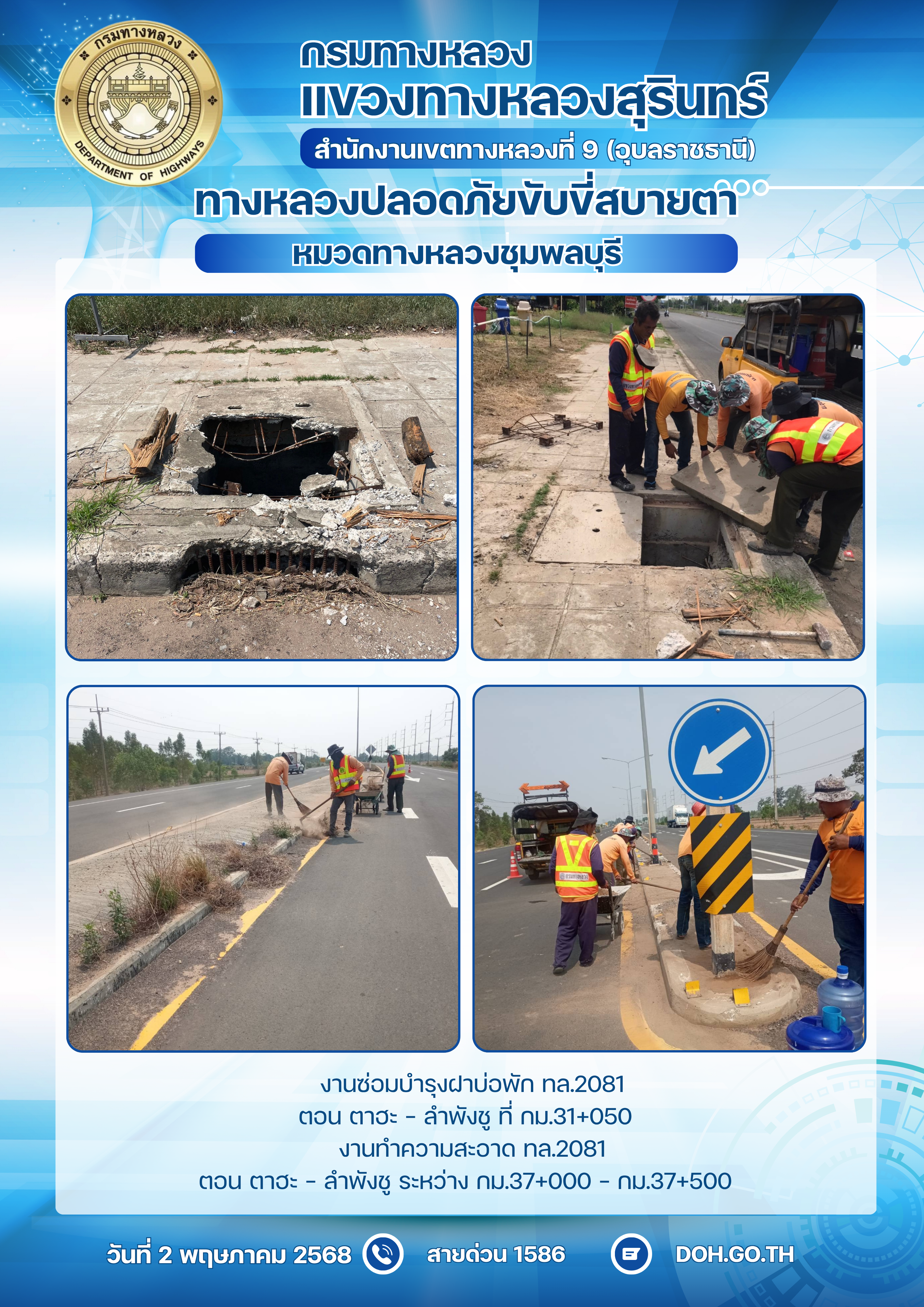 ทางหลวงปลอยภัย ขับขี่สบายตา 2 พฤษภาคม 2568 |