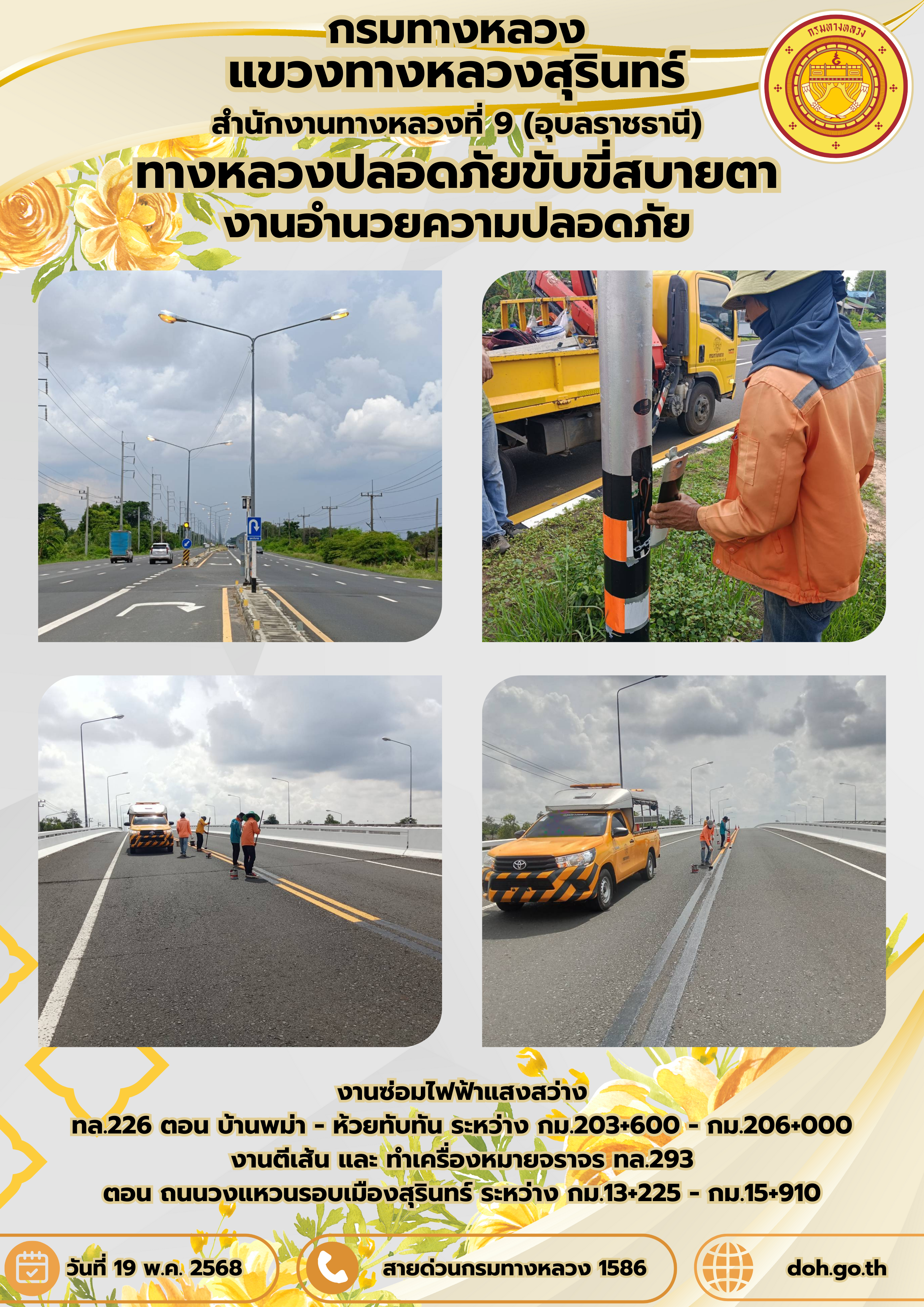 ทางหลวงปลอยภัย ขับขี่สบายตา 19 พฤษภาคม 2568 |