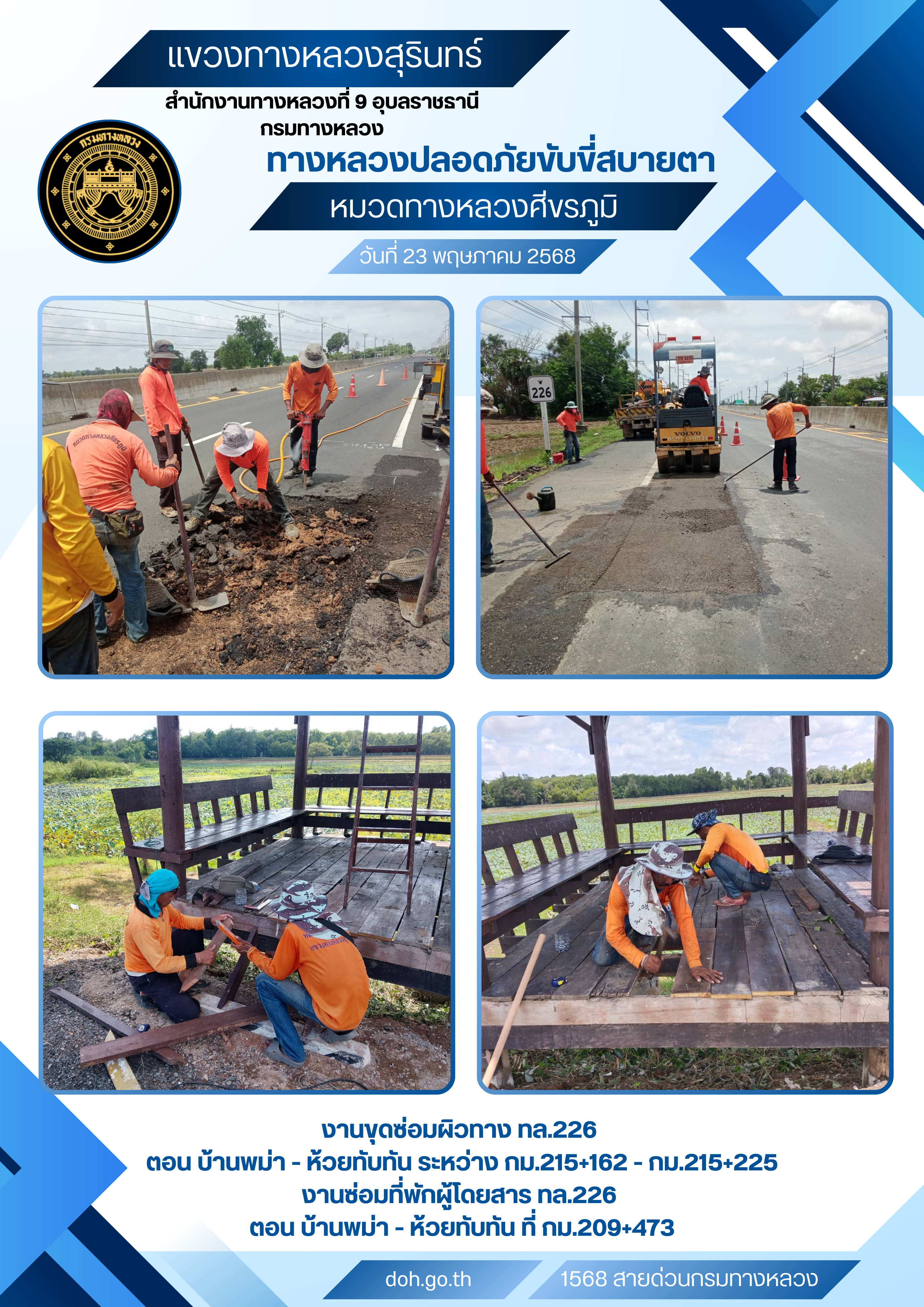 ทางหลวงปลอยภัย ขับขี่สบายตา 23 พฤษภาคม 2568 |