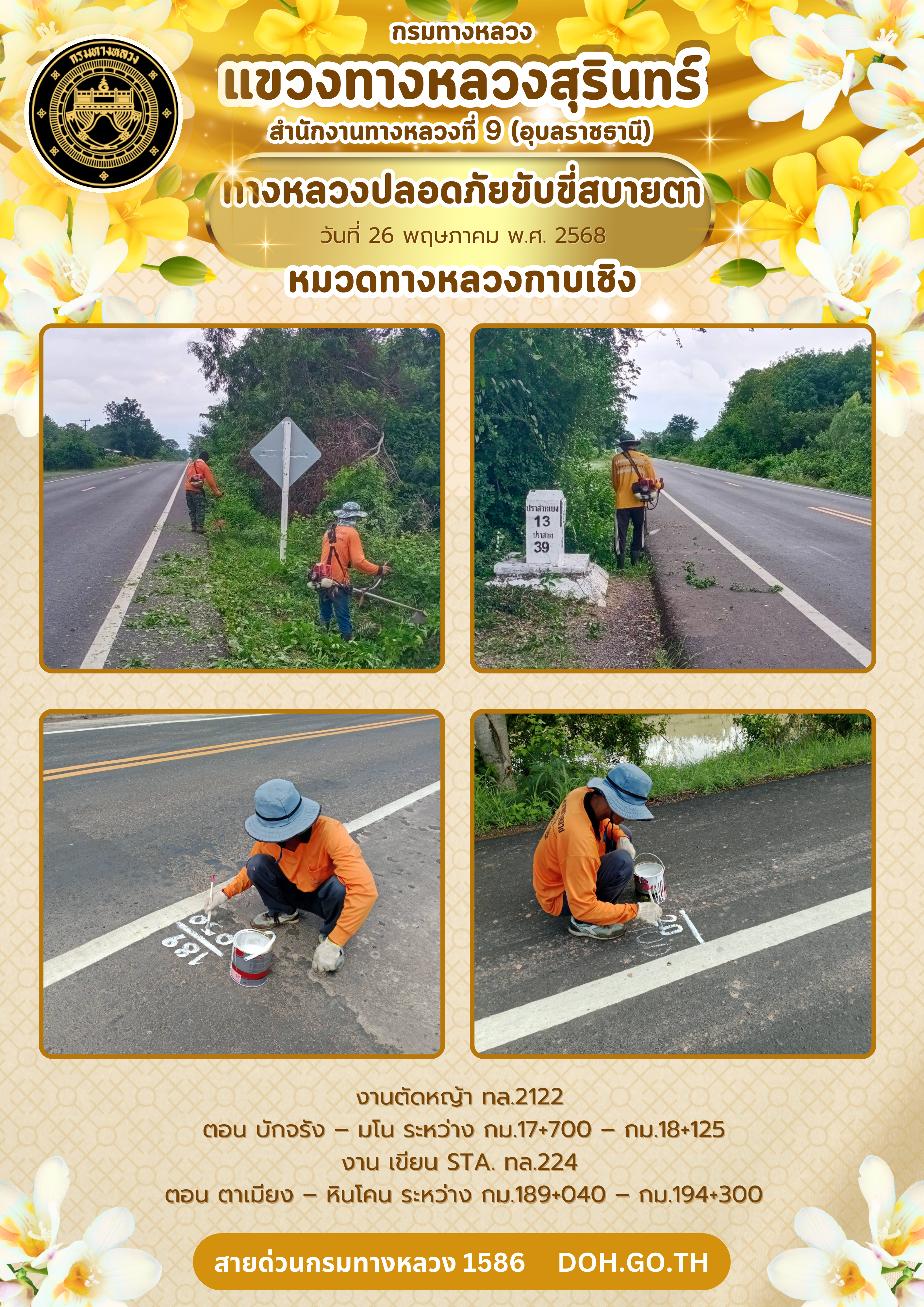 ทางหลวงปลอยภัย ขับขี่สบายตา 26 พฤษภาคม 2568 |
