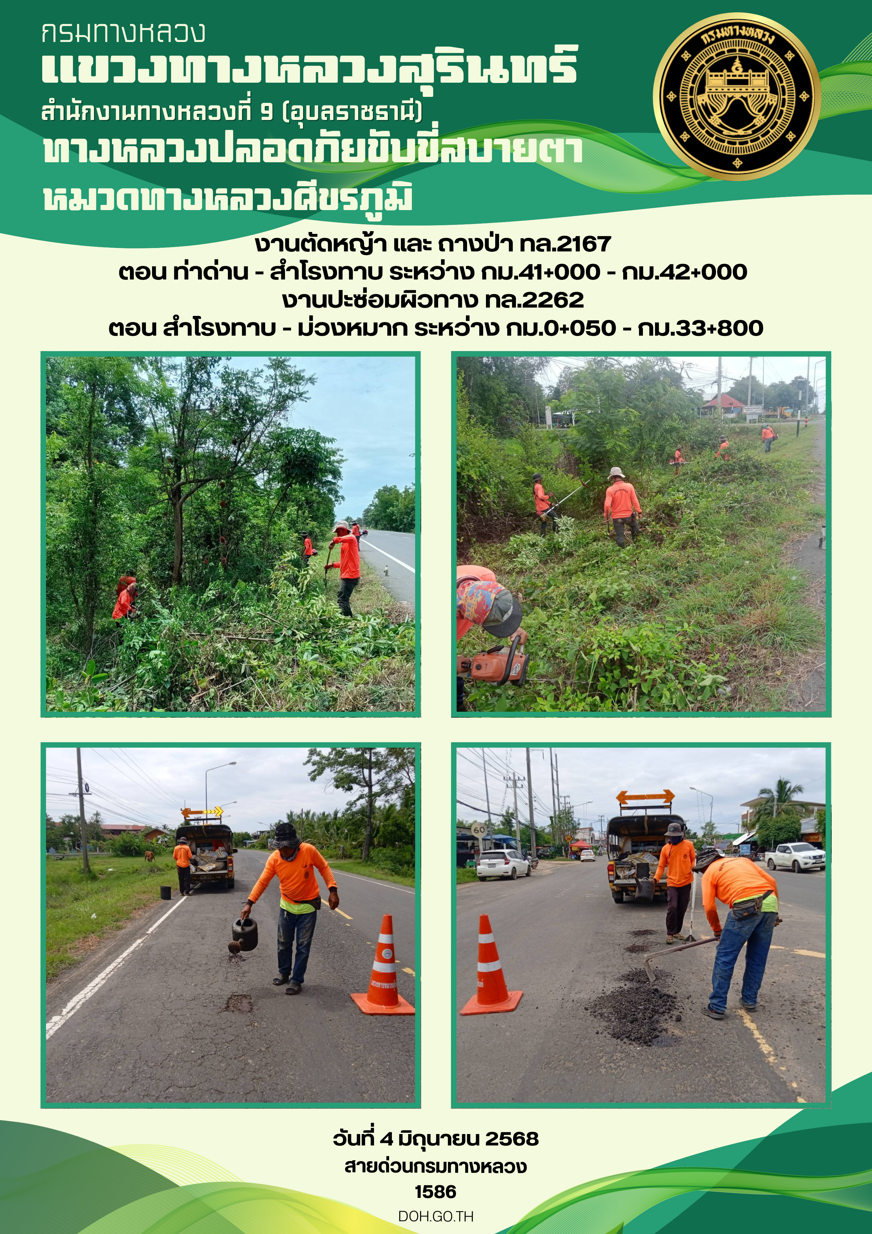 ทางหลวงปลอยภัย ขับขี่สบายตา 4 มิถุนายน 2568 |