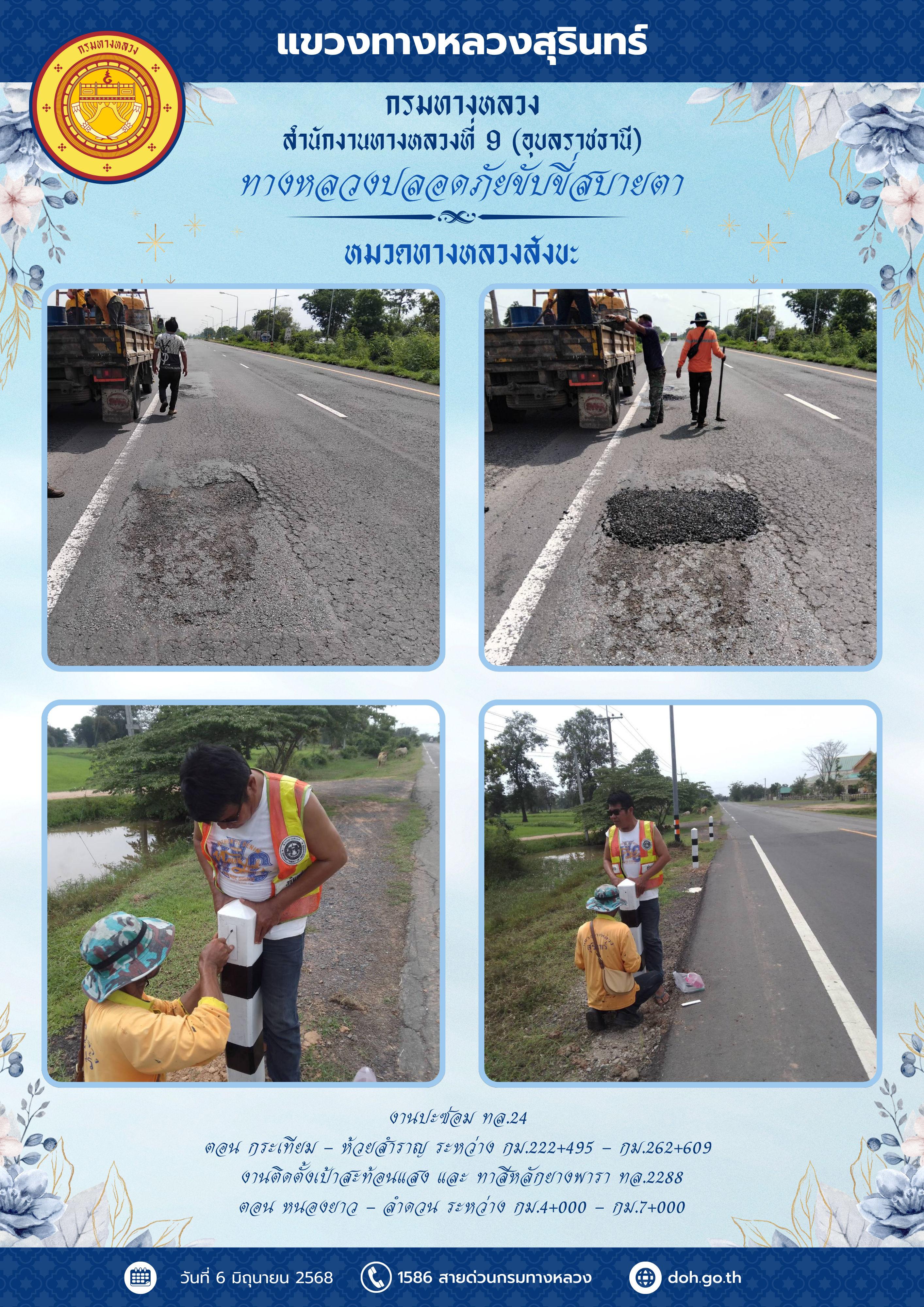 ทางหลวงปลอยภัย ขับขี่สบายตา 6 มิถุนายน 2568 |