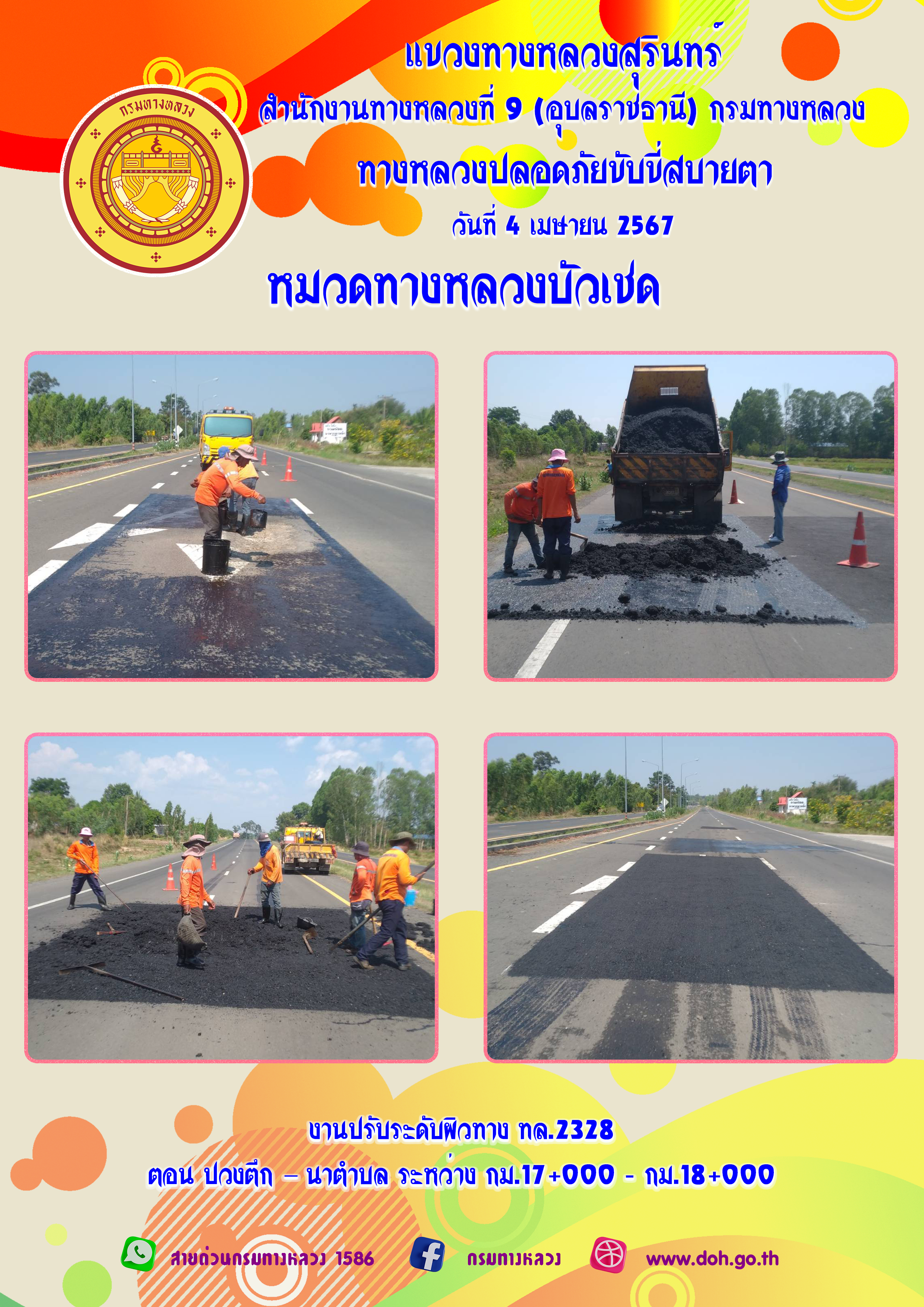 ทางหลวงปลอยภัย ขับขี่สบายตา 4 เมษายน 2567 |
