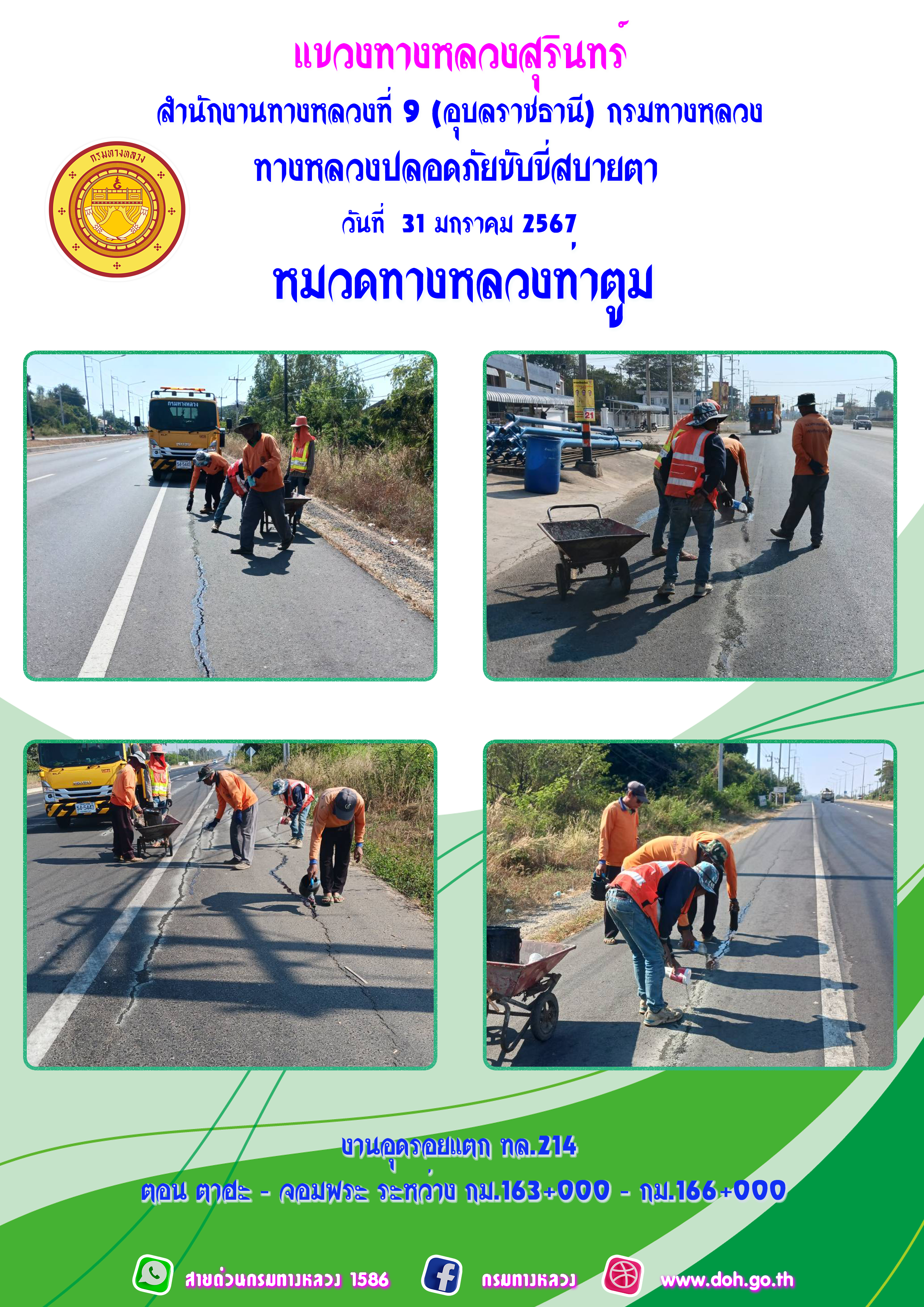 ทางหลวงปลอยภัย ขับขี่สบายตา 31 มกราคม 2567 |