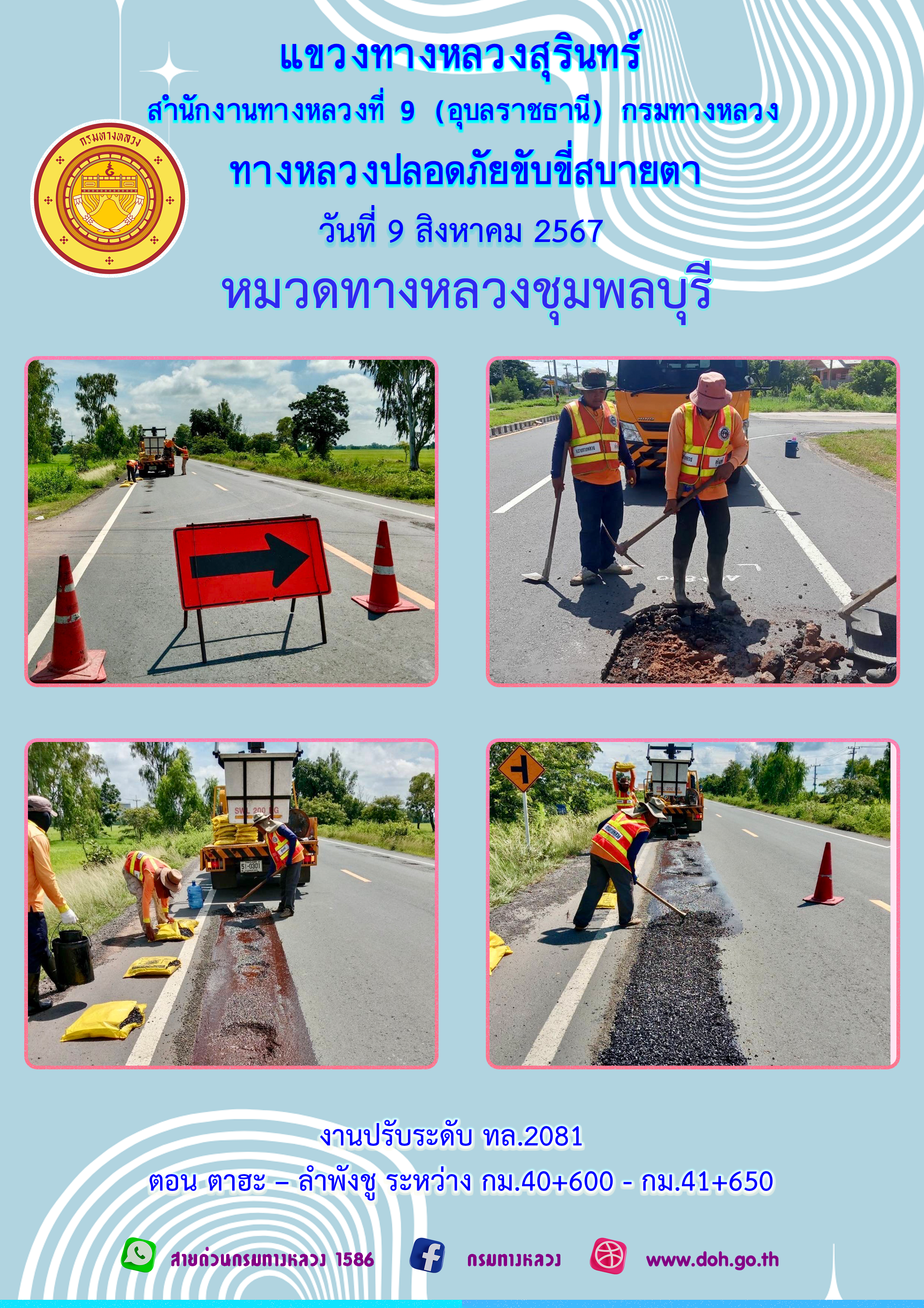 ทางหลวงปลอยภัย ขับขี่สบายตา 9 สิงหาคม 2567 |