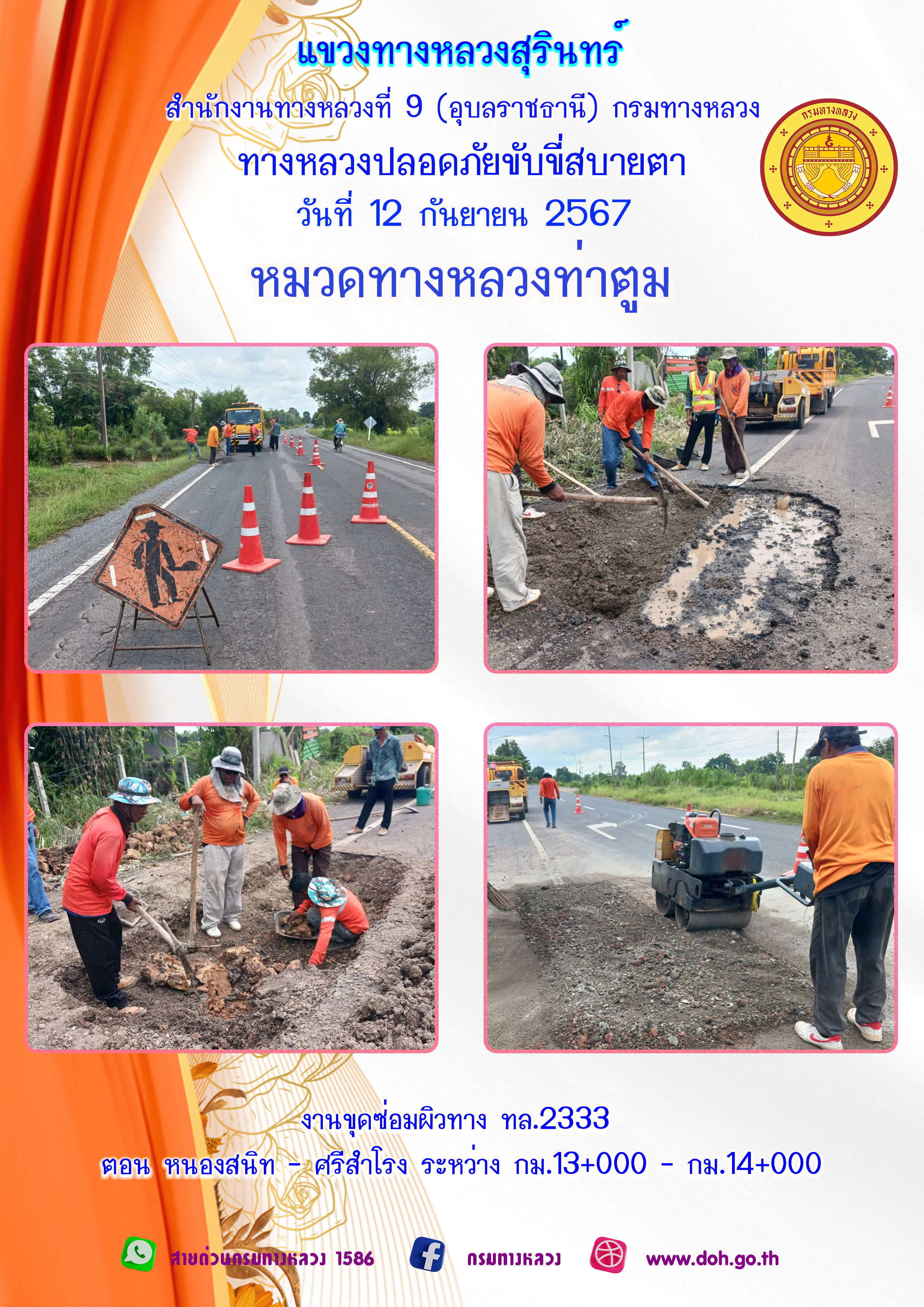 ทางหลวงปลอยภัย ขับขี่สบายตา 9 กันยายน 2567 |
