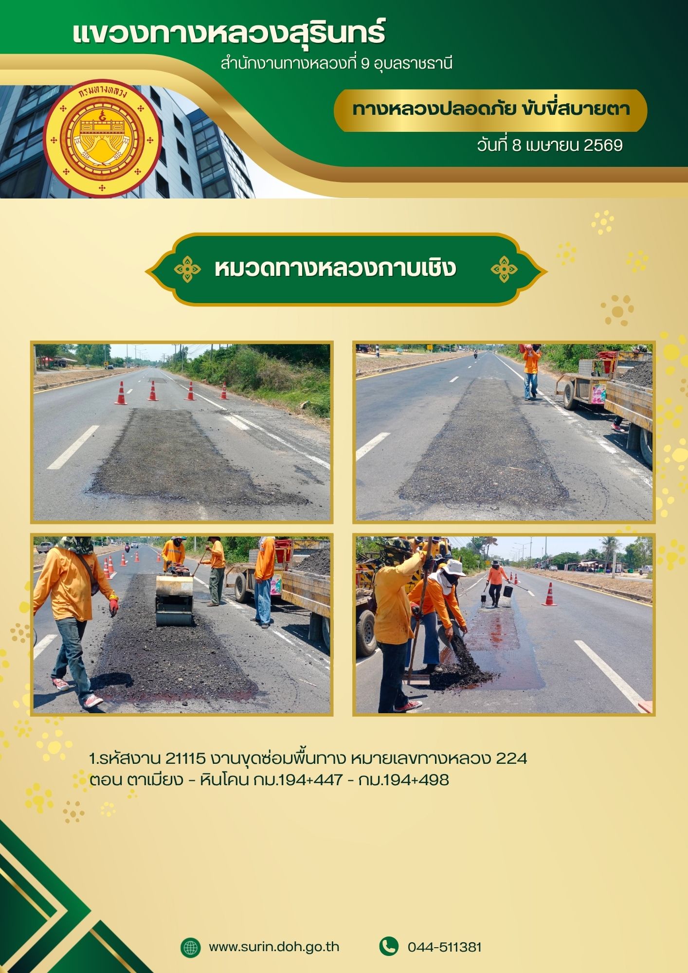 ทางหลวงปลอดภัย ขับขี่สบายตา 8 เมษายน 2569 |