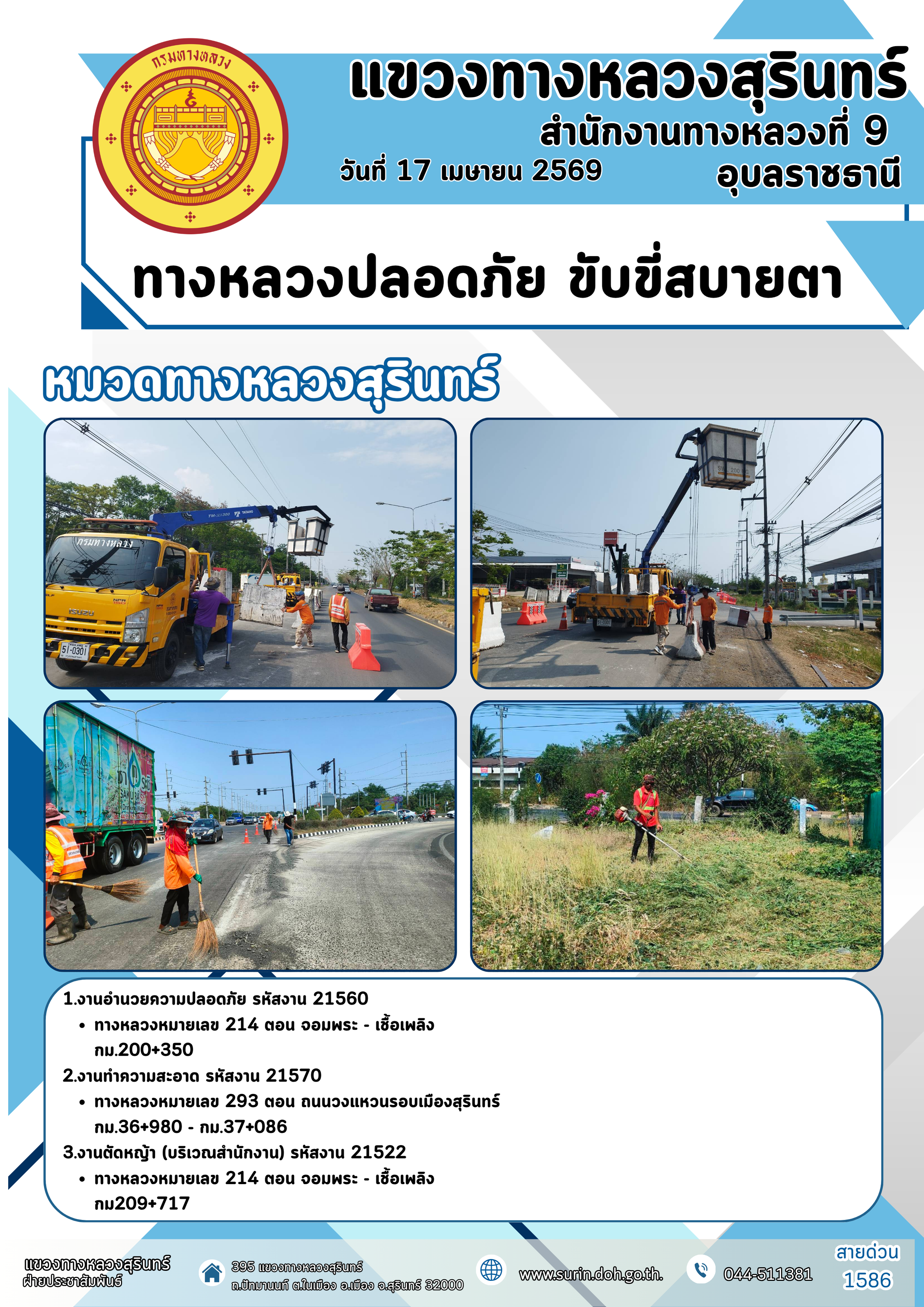 ทางหลวงปลอดภัย ขับขี่สบายตา 17 เมษายน 2569 |