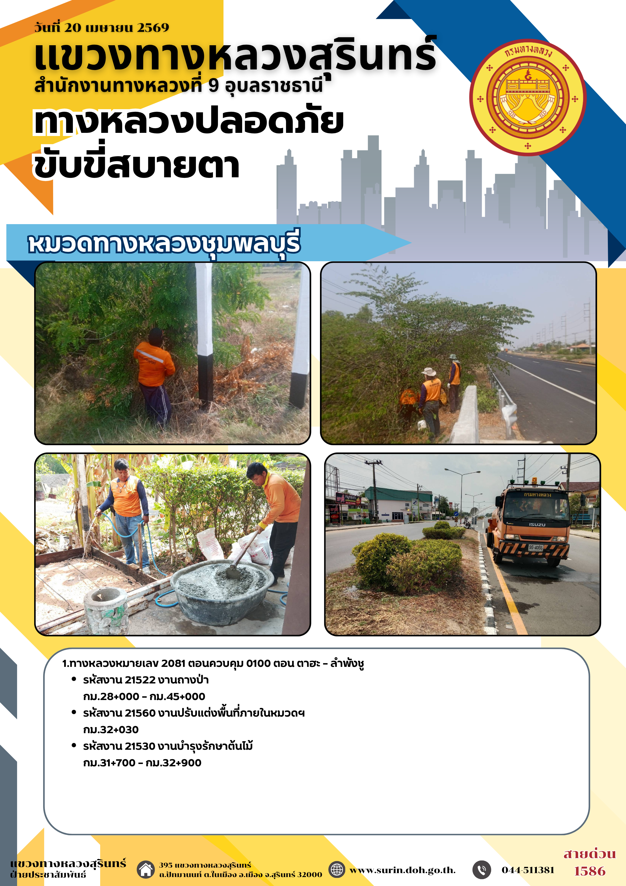 ทางหลวงปลอดภัย ขับขี่สบายตา 20 เมษายน 2569 |