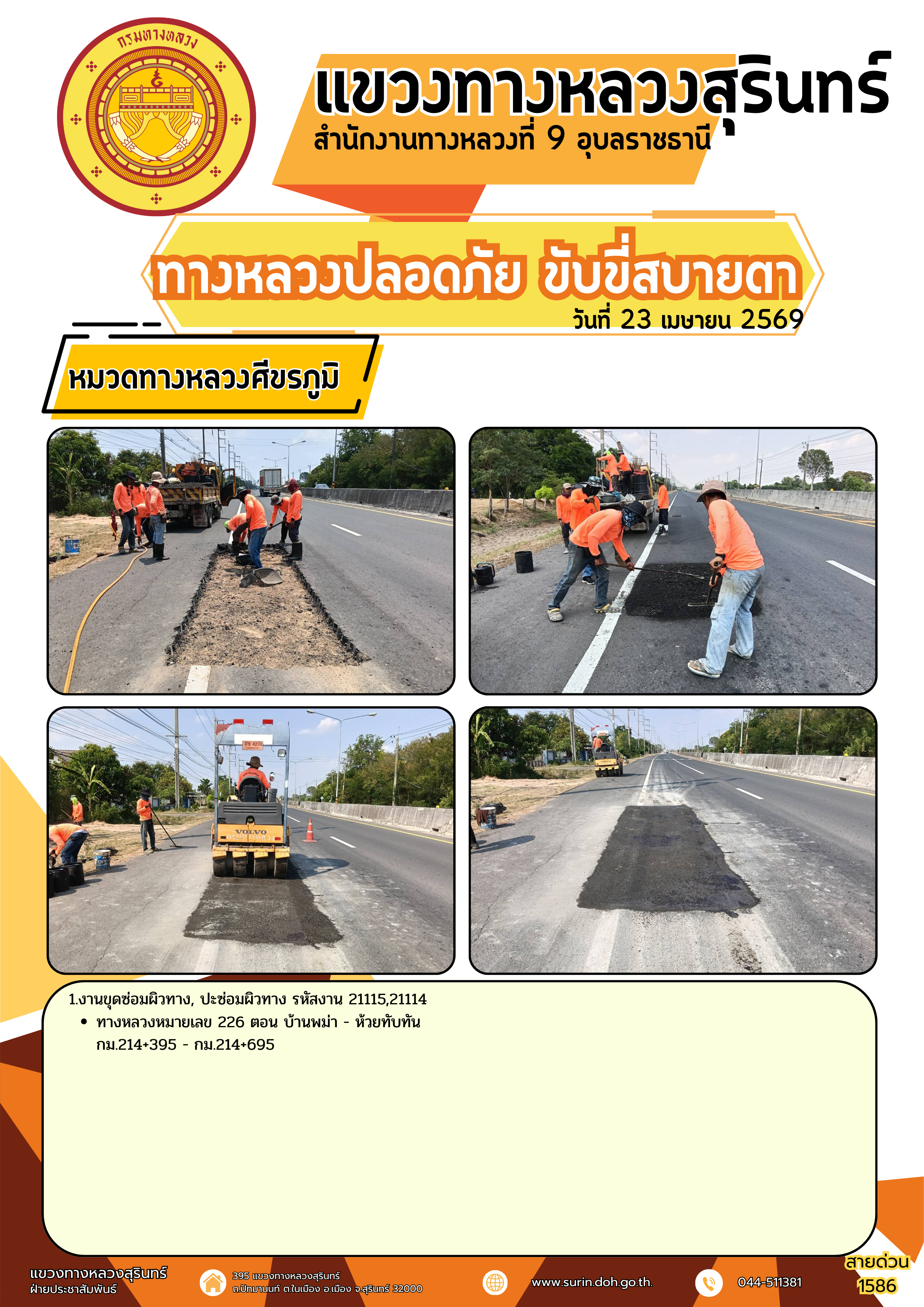 ทางหลวงปลอดภัย ขับขี่สบายตา 23 เมษายน 2569 |