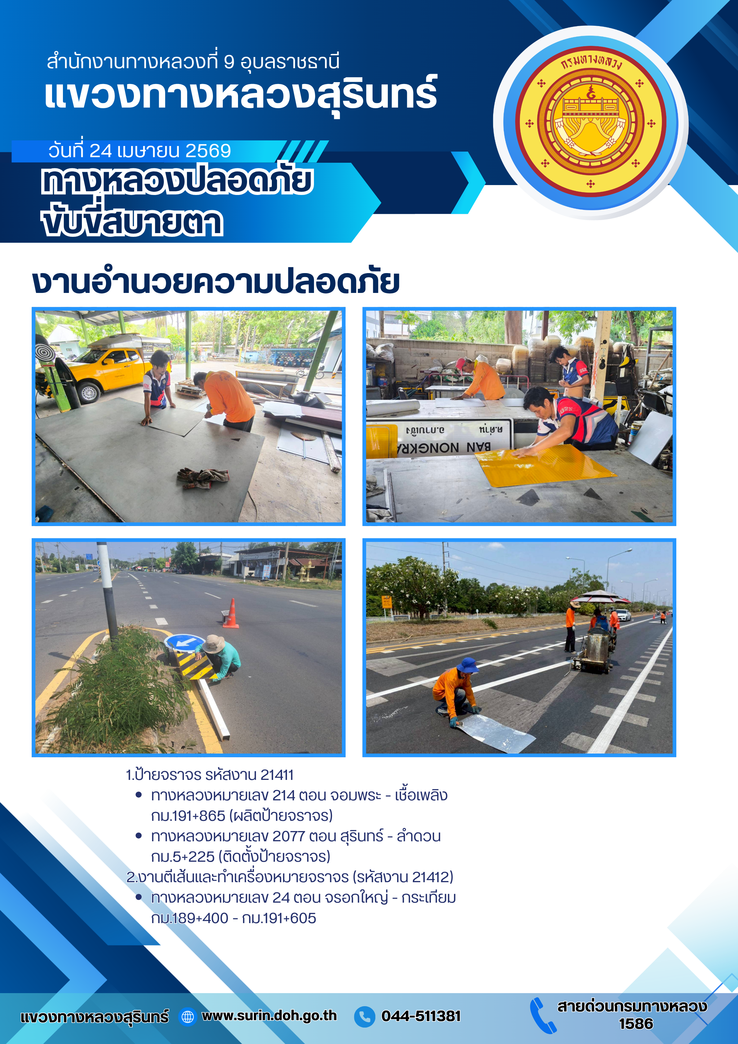 ทางหลวงปลอดภัย ขับขี่สบายตา 24 เมษายน 2569 |