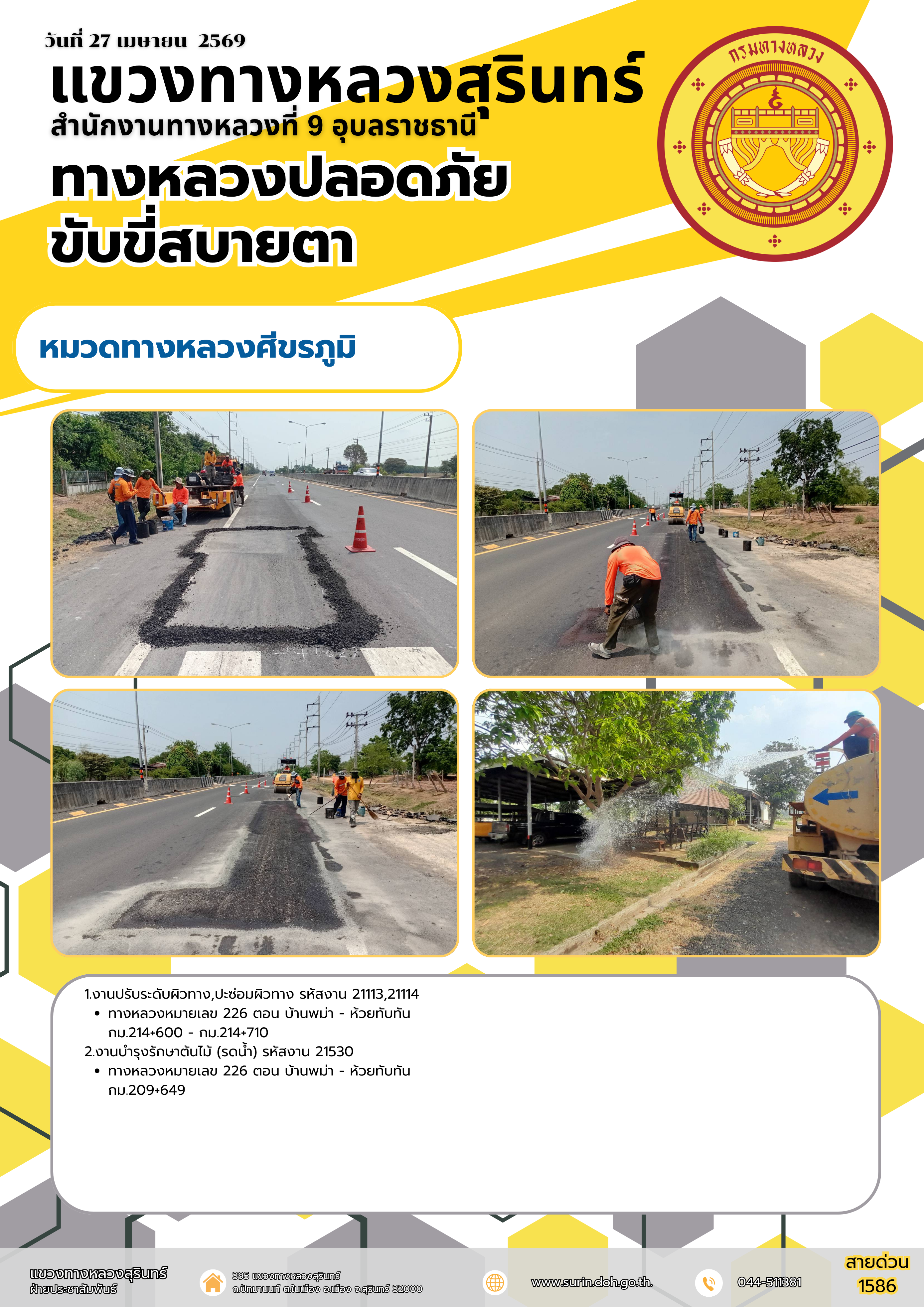 ทางหลวงปลอดภัย ขับขี่สบายตา 27 เมษายน 2569 |