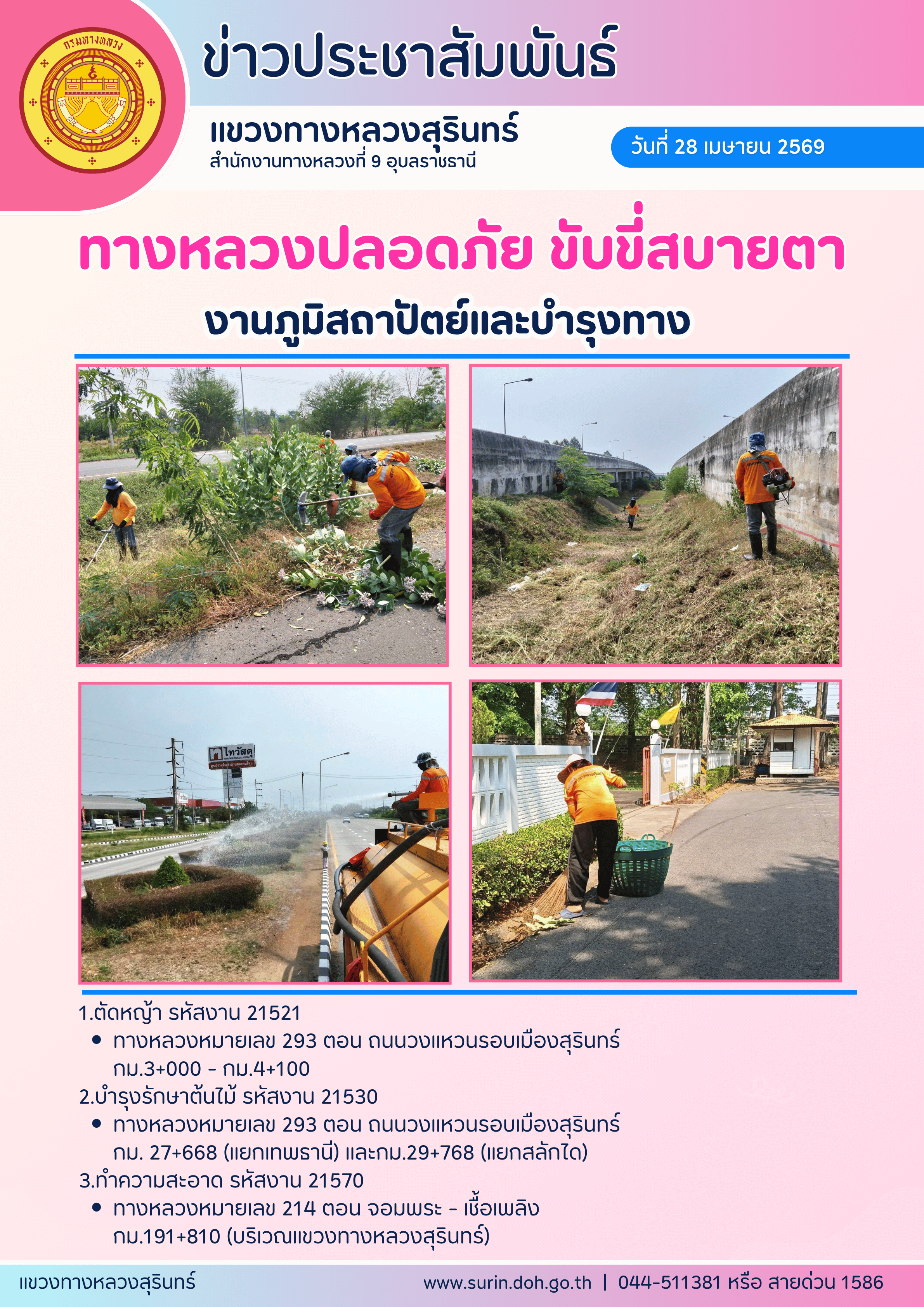 ทางหลวงปลอดภัย ขับขี่สบายตา 28 เมษายน 2569 |