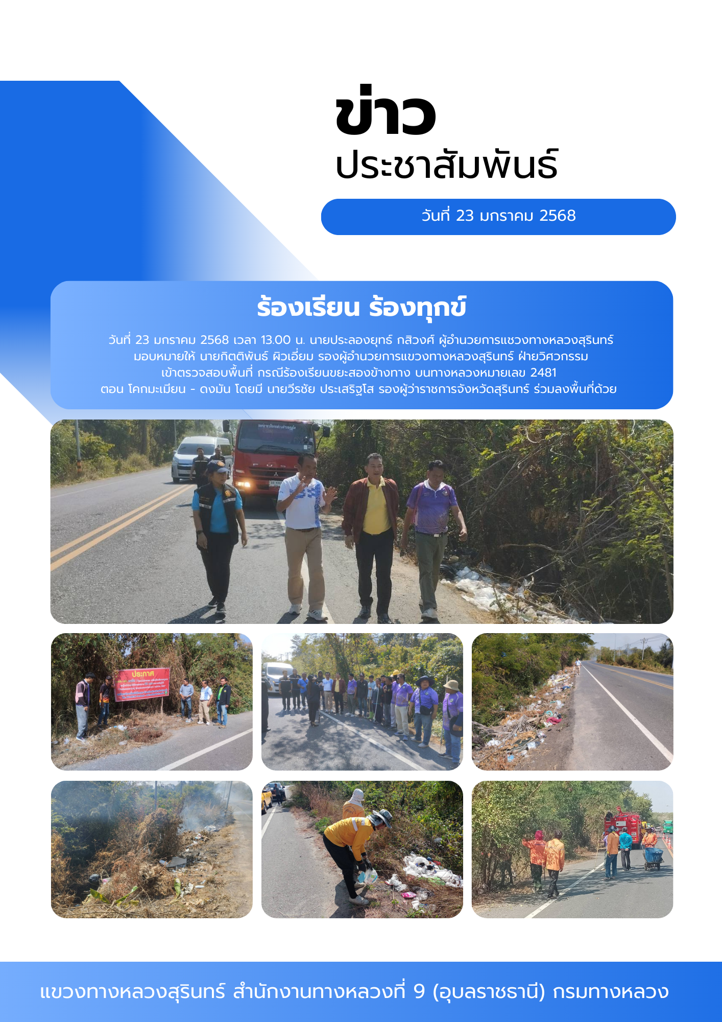 เข้าตรวจสอบพื้นที่ กรณีร้องเรียนขยะสองข้างทาง บนทางหลวงหมายเลข 2481