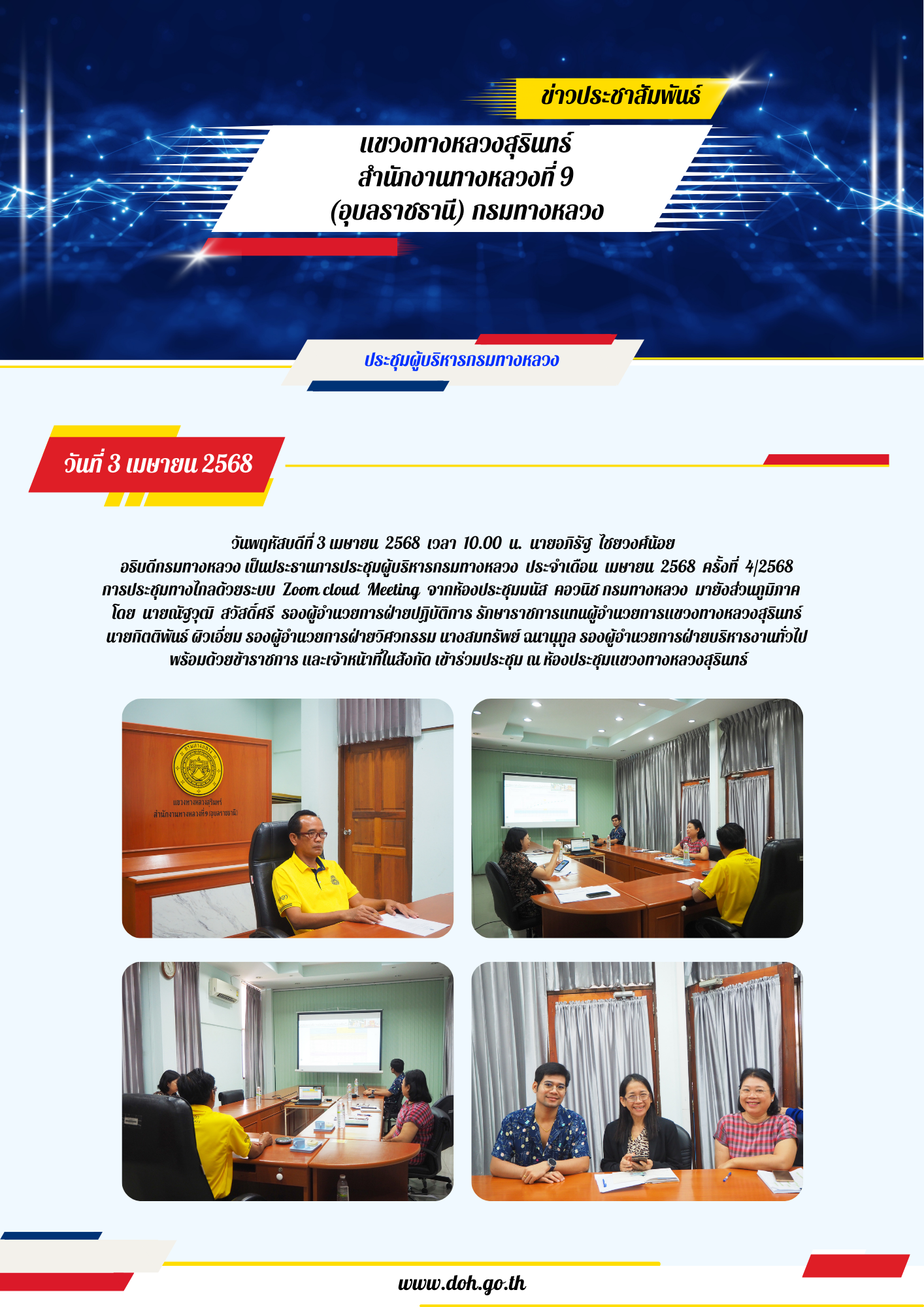 การประชุมผู้บริหารกรมทางหลวง ประจำเดือน เมษายน 2568 ครั้งที่ 4/2568