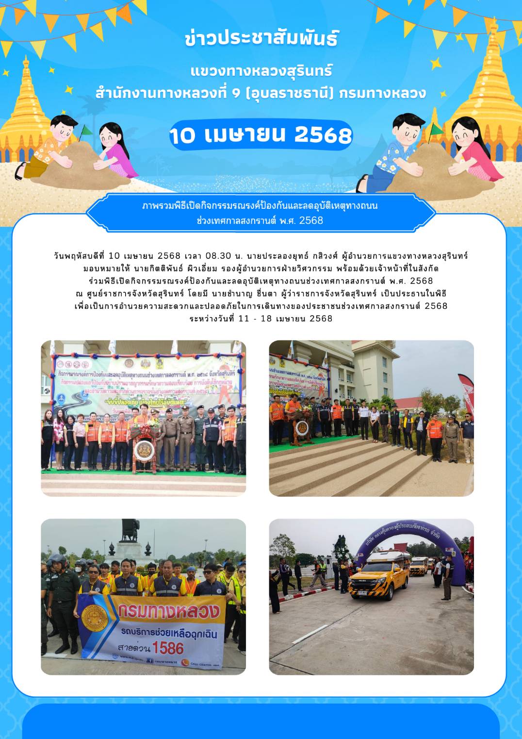 พิธีเปิดกิจกรรมรณรงค์ป้องกันและลดอุบัติเหตุทางถนนช่วงเทศกาลสงกรานต์ พ.ศ. 2568