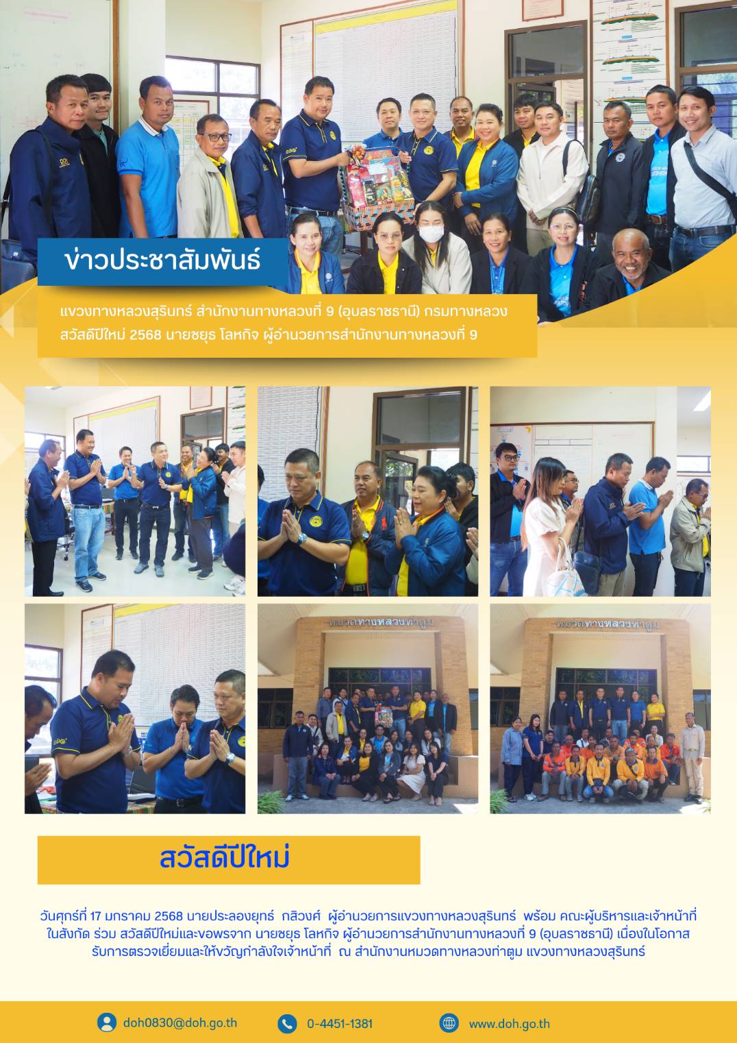 สวัสดีปีใหม่และขอพรจาก นายชยุธ โลหกิจ ผู้อำนวยการสำนักงานทางหลวงที่ 9 (อุบลราชธานี)