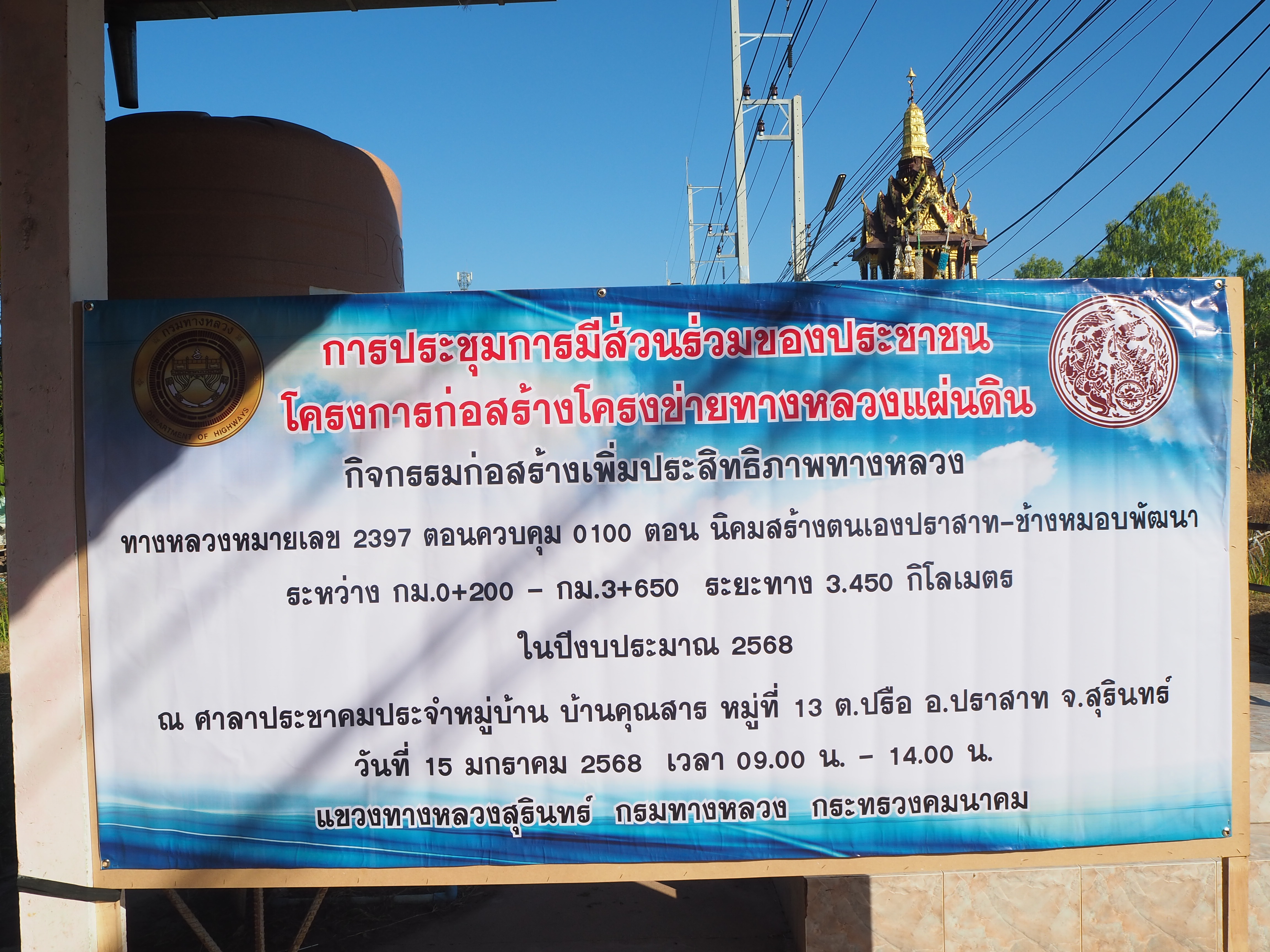 รายงานสรุปผลการดำเนินงานการมีส่วนร่วมของประชาชนทางหลวงหมายเลข 2397 ตอนควบคุม 0100 ตอน นิคมสร้างตนเองปราสาท – ช้างหมอบพัฒนา ระหว่าง กม.0+200 - กม.3+650 ระยะทาง 3.450 กิโลเมตร