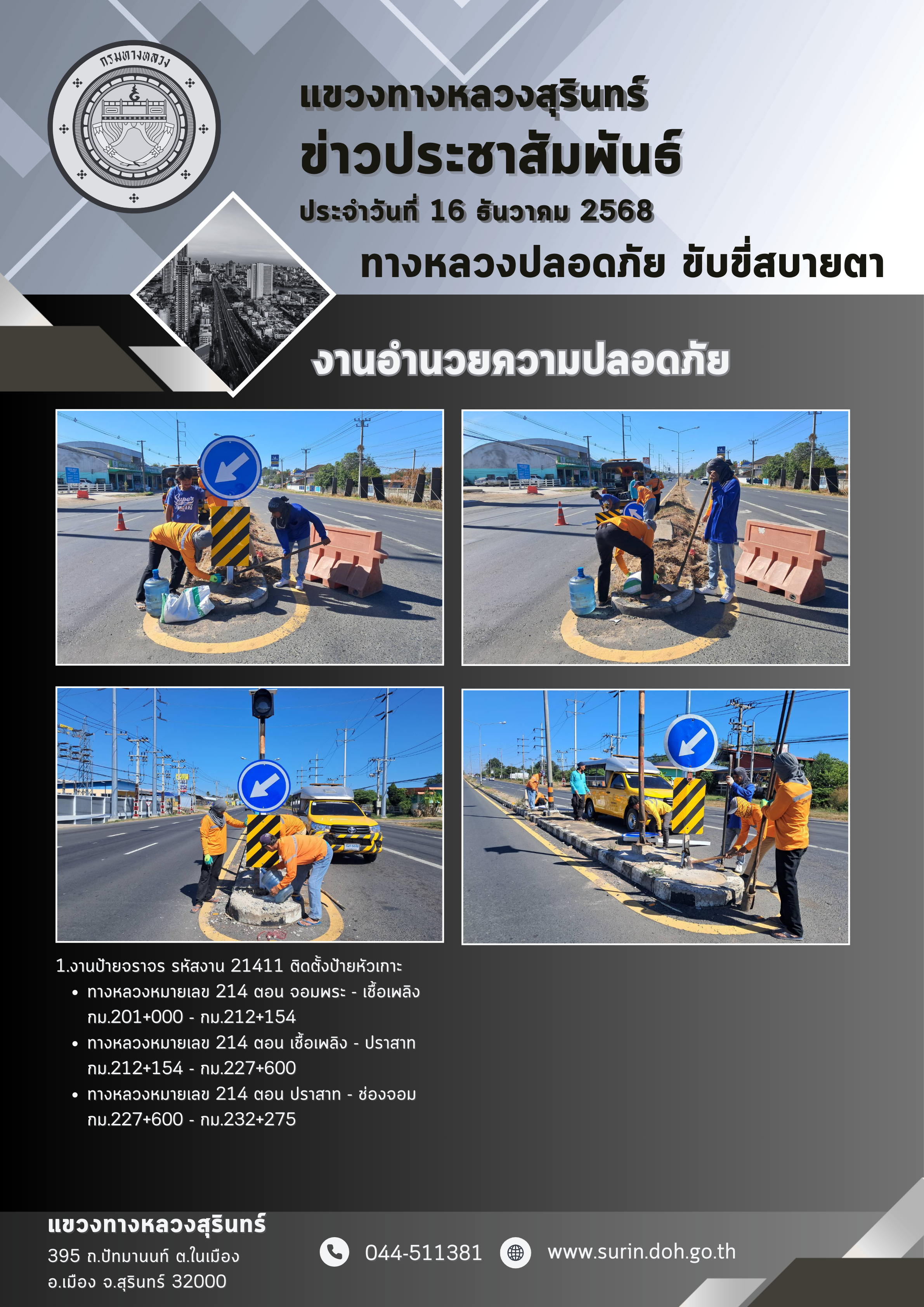 ทางหลวงปลอดภัย ขับขี่สบายตา 16 ธันวาคม 2568 |