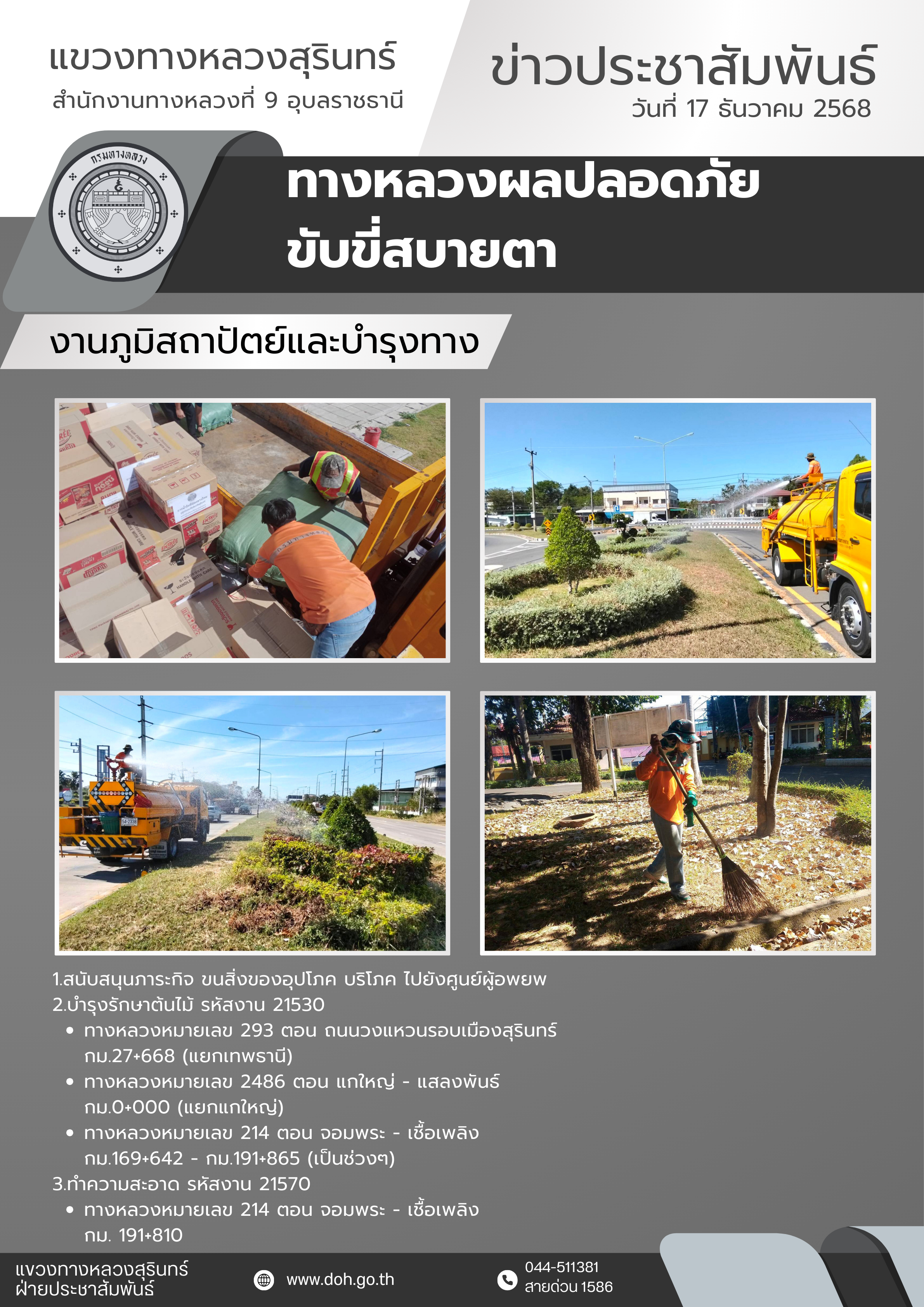 ทางหลวงปลอดภัย ขับขี่สบายตา 17 ธันวาคม 2568 |