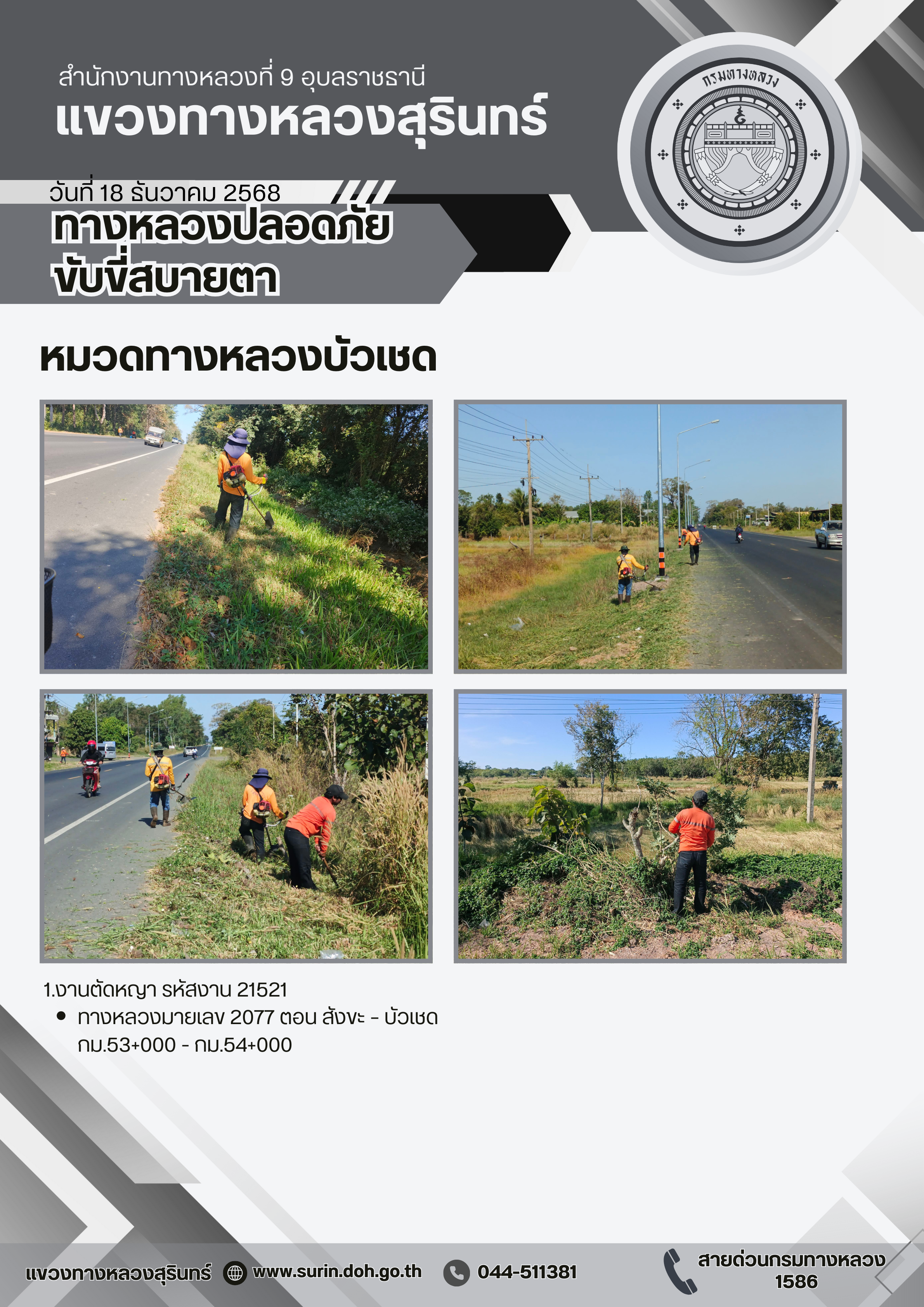 ทางหลวงปลอดภัย ขับขี่สบายตา 18 ธันวาคม 2568 |