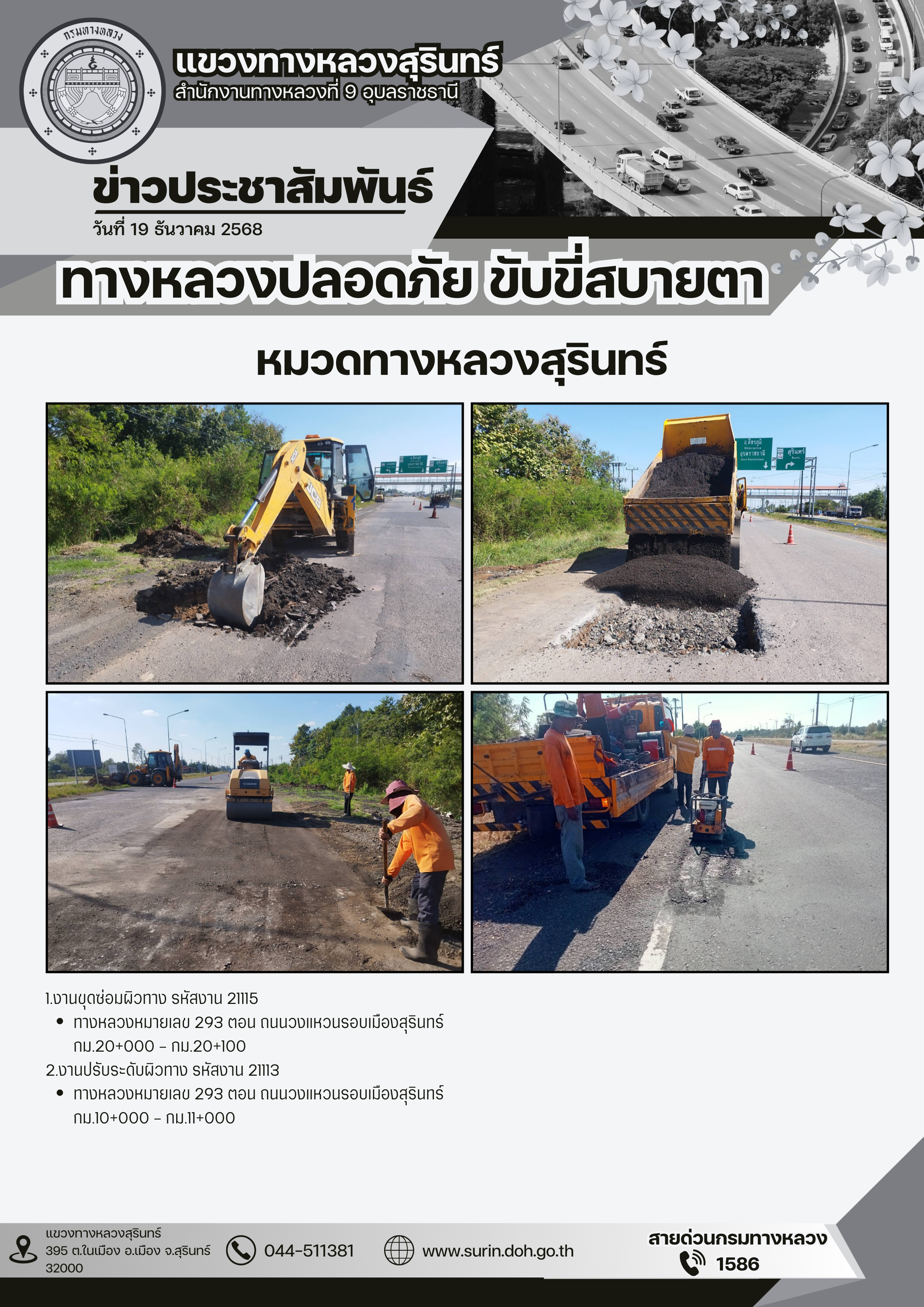 ทางหลวงปลอดภัย ขับขี่สบายตา 19 ธันวาคม 2568 |