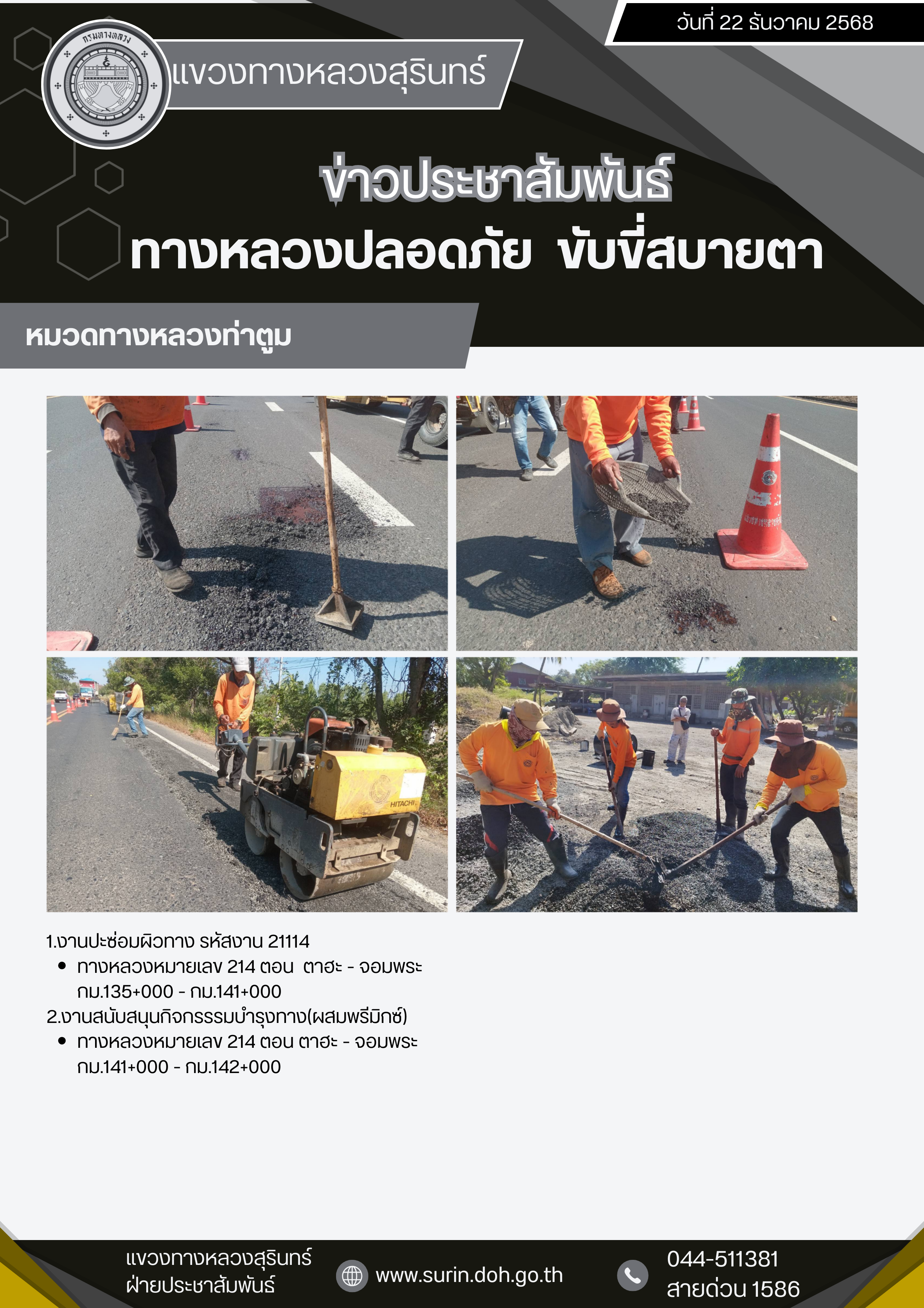 ทางหลวงปลอดภัย ขับขี่สบายตา 22 ธันวาคม 2568 |