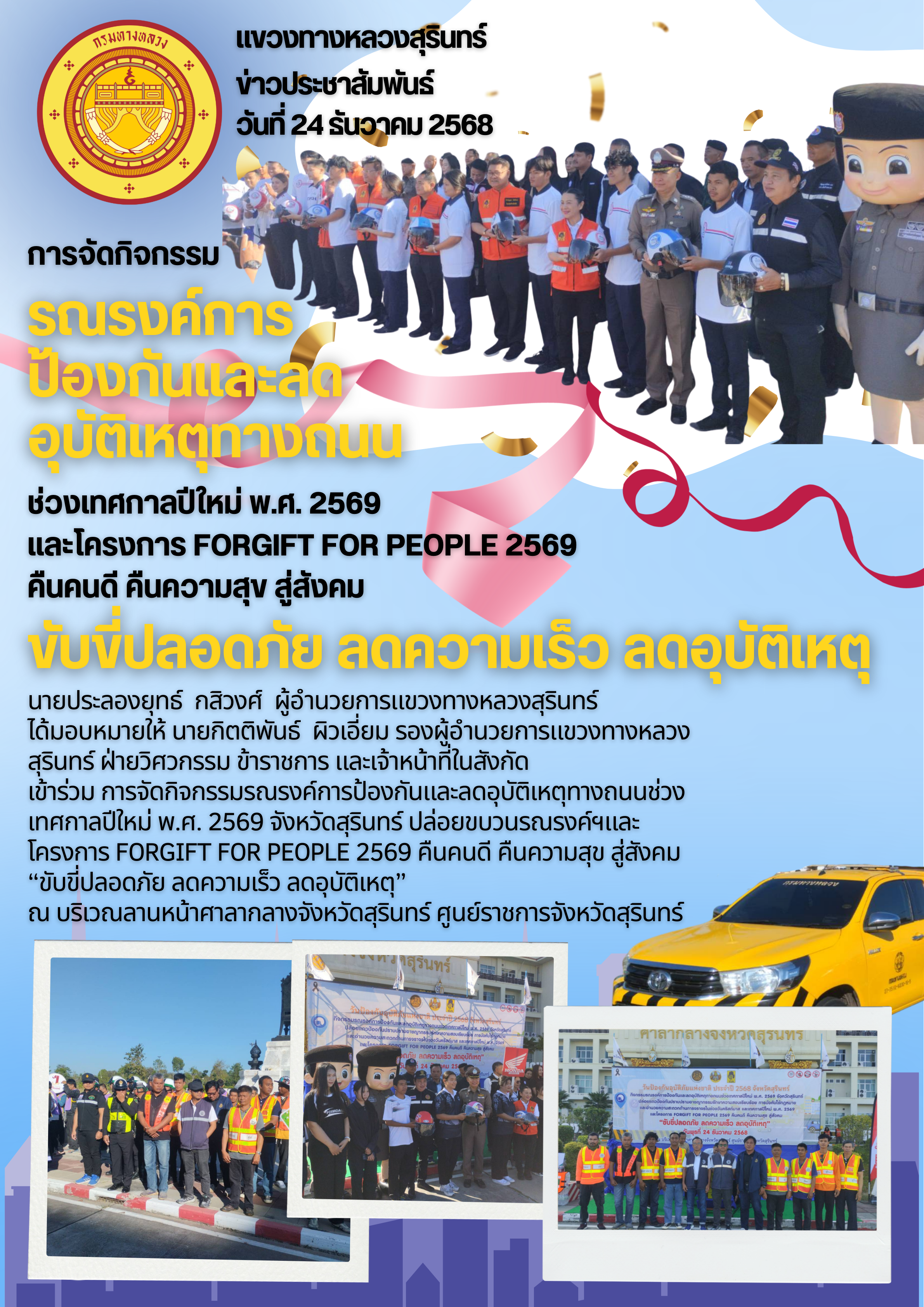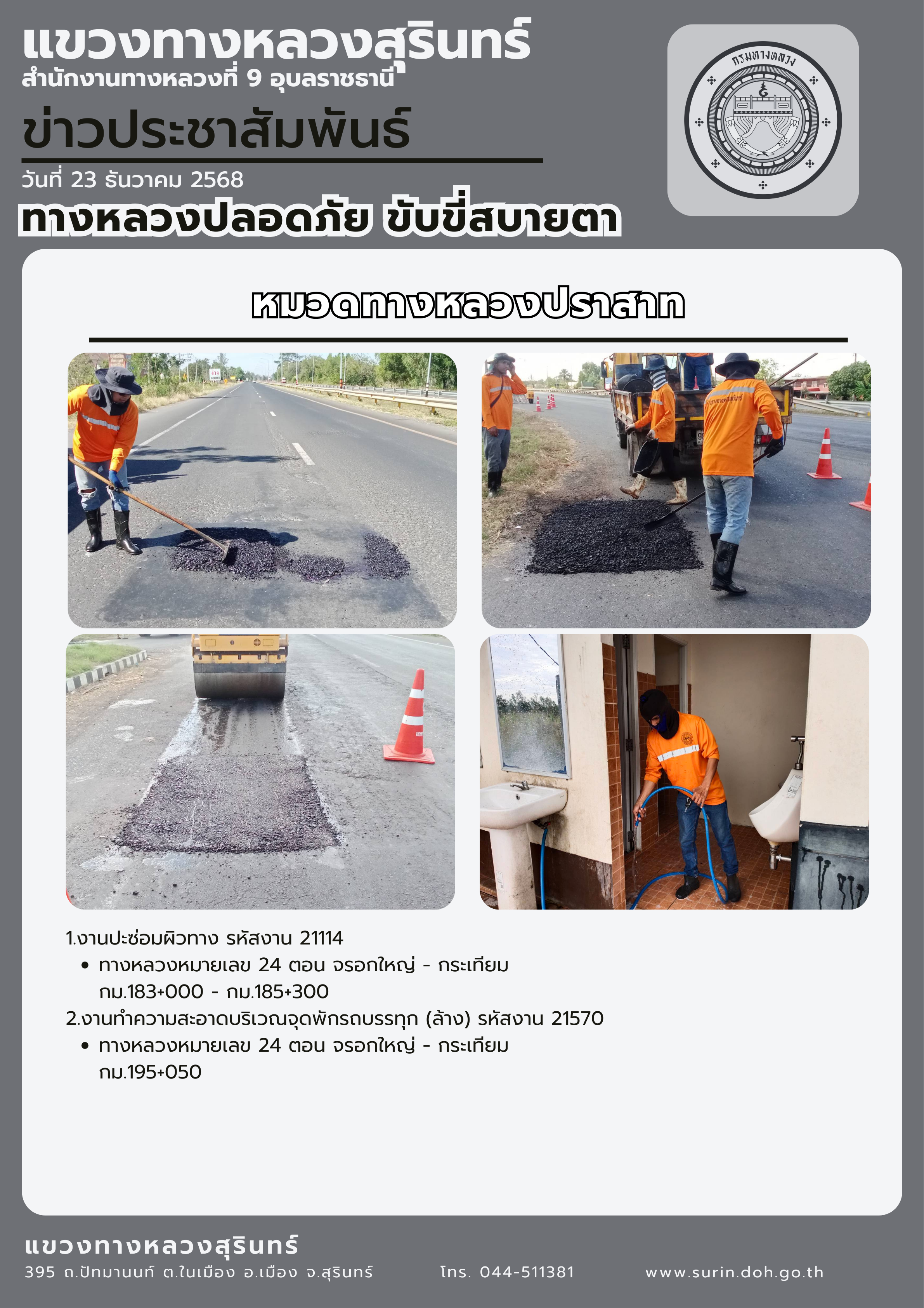 ทางหลวงปลอดภัย ขับขี่สบายตา 24 ธันวาคม 2568 |