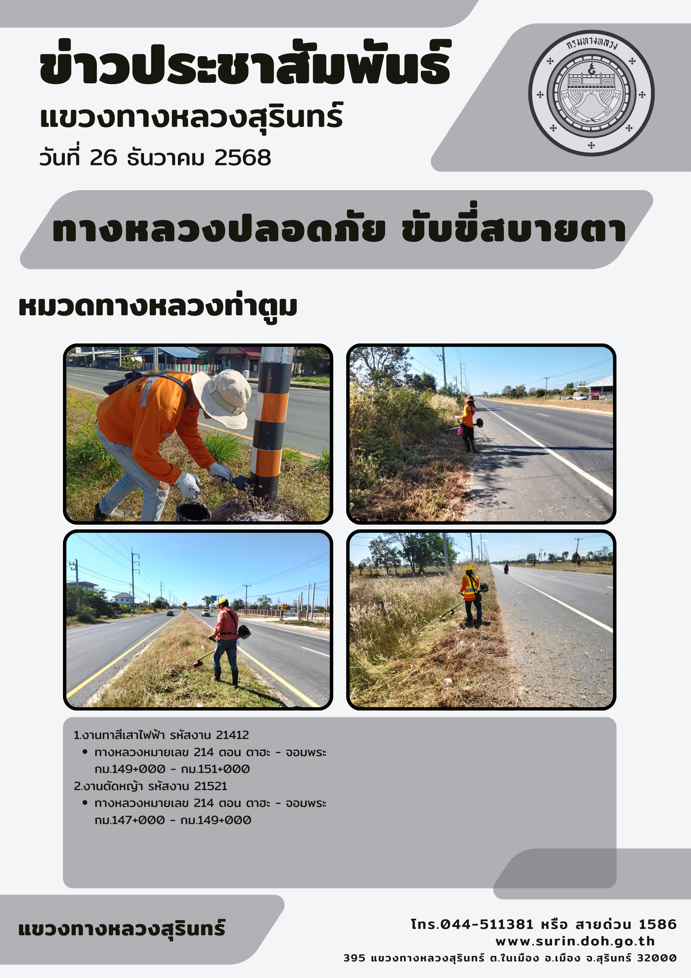 ทางหลวงปลอดภัย ขับขี่สบายตา 26 ธันวาคม 2568 |