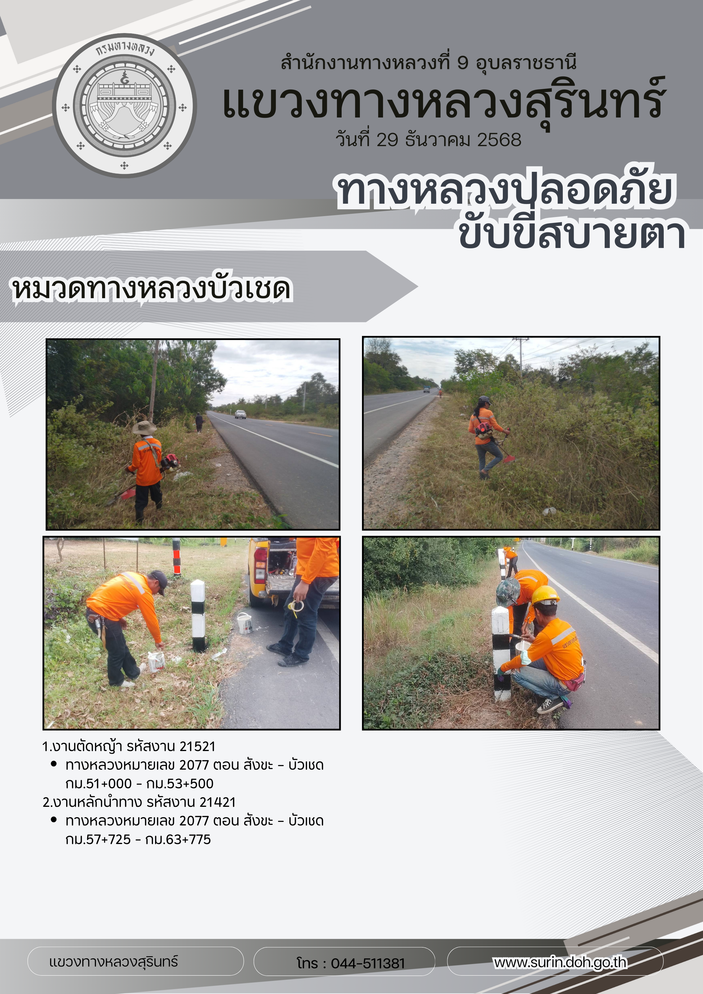 ทางหลวงปลอดภัย ขับขี่สบายตา 29 ธันวาคม 2568 |