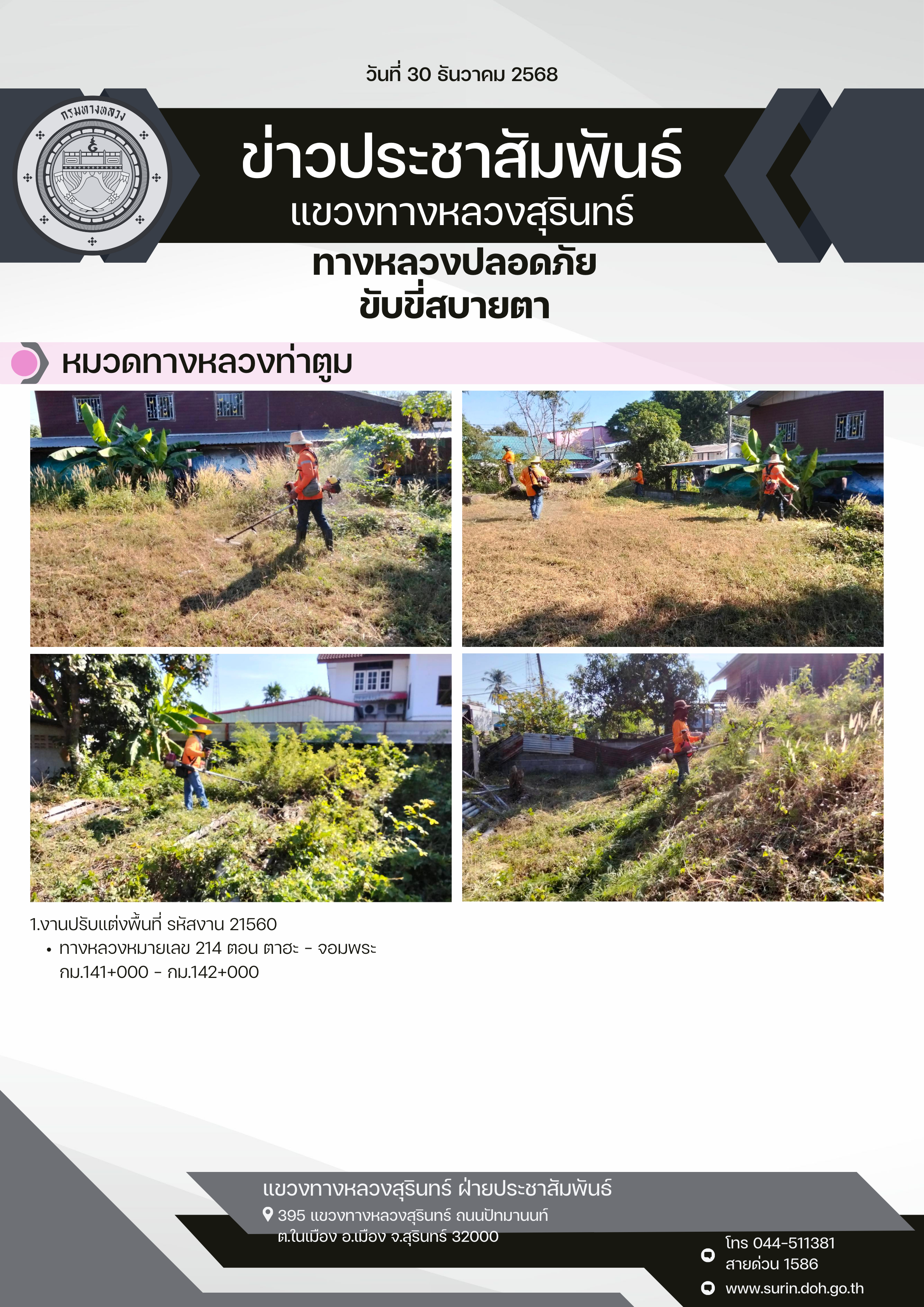 ทางหลวงปลอดภัย ขับขี่สบายตา 30 ธันวาคม 2568 |