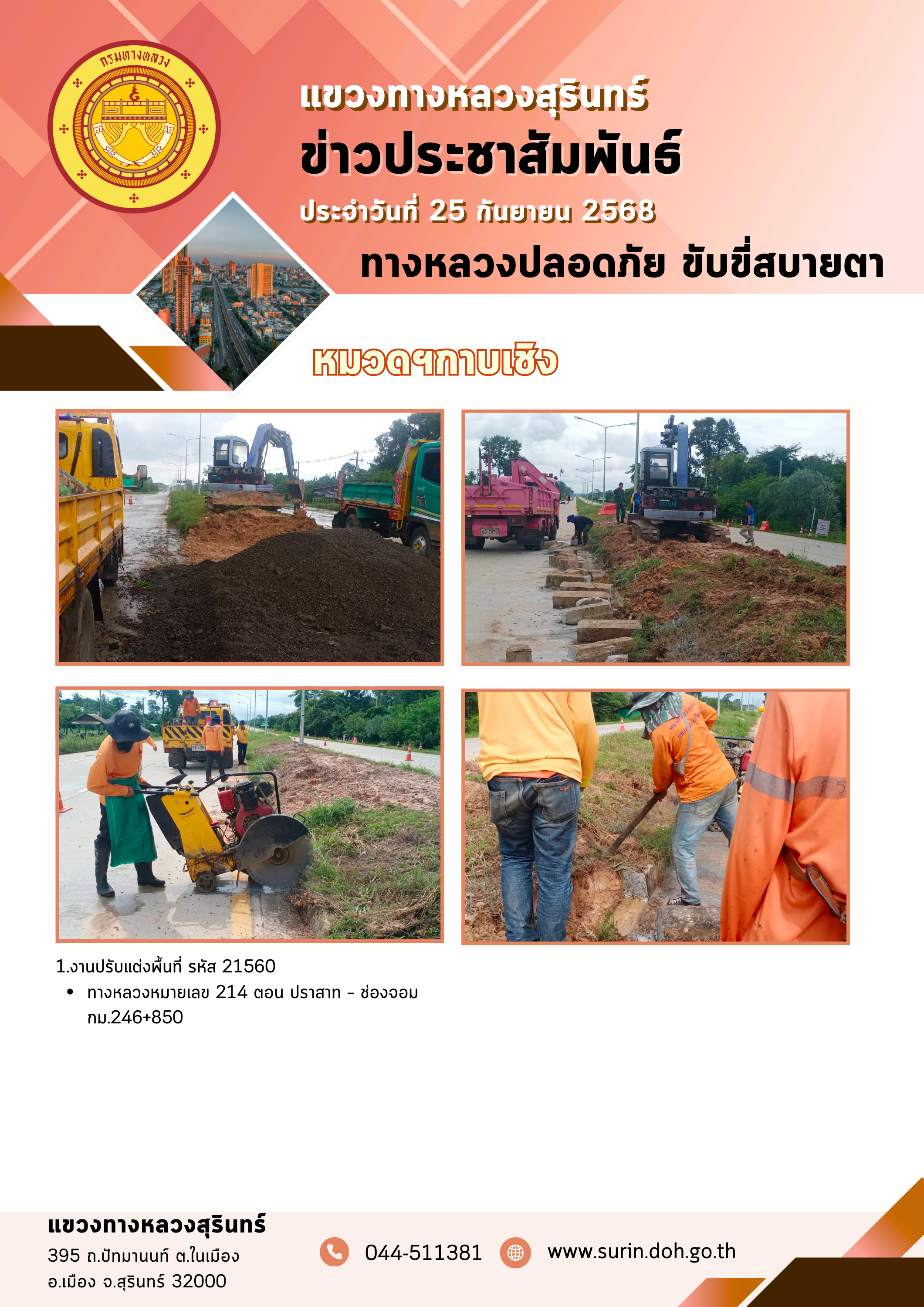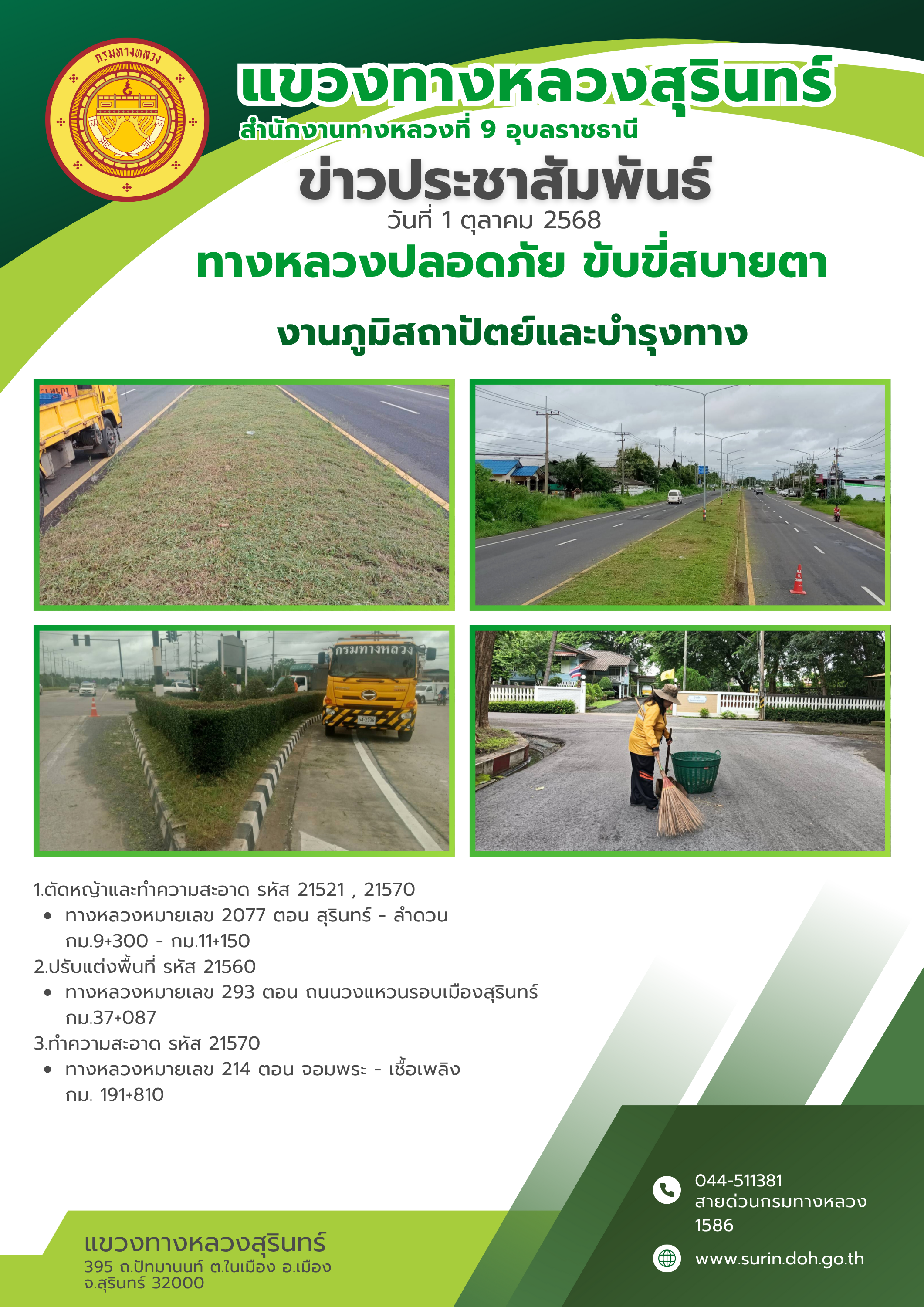 ทางหลวงปลอดภัย ขับขี่สบายตา 25 กันยายน 2568 |