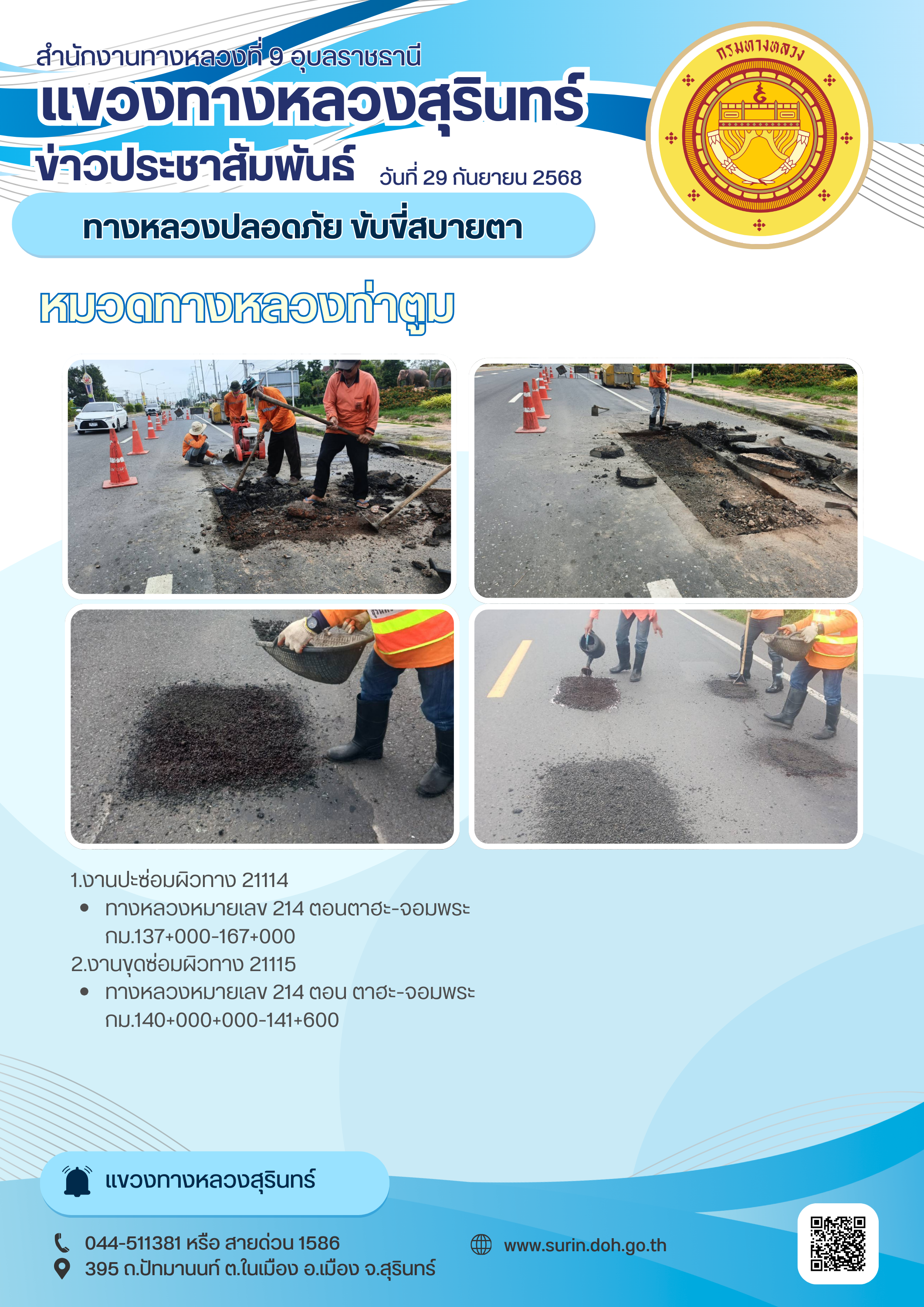 ทางหลวงปลอดภัย ขับขี่สบายตา 29 กันยายน 2568 |
