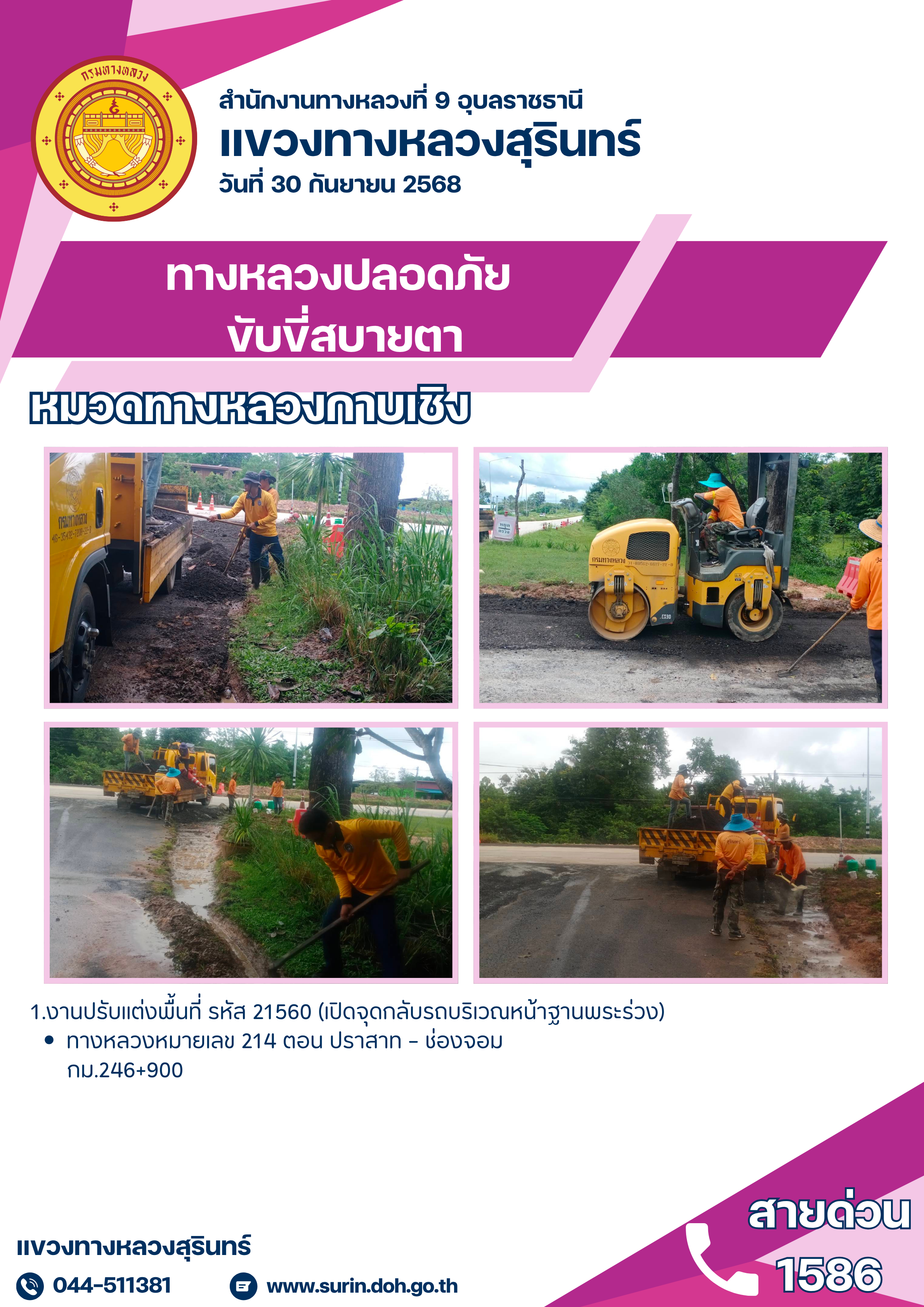 ทางหลวงปลอดภัย ขับขี่สบายตา 30 กันยายน 2568 |