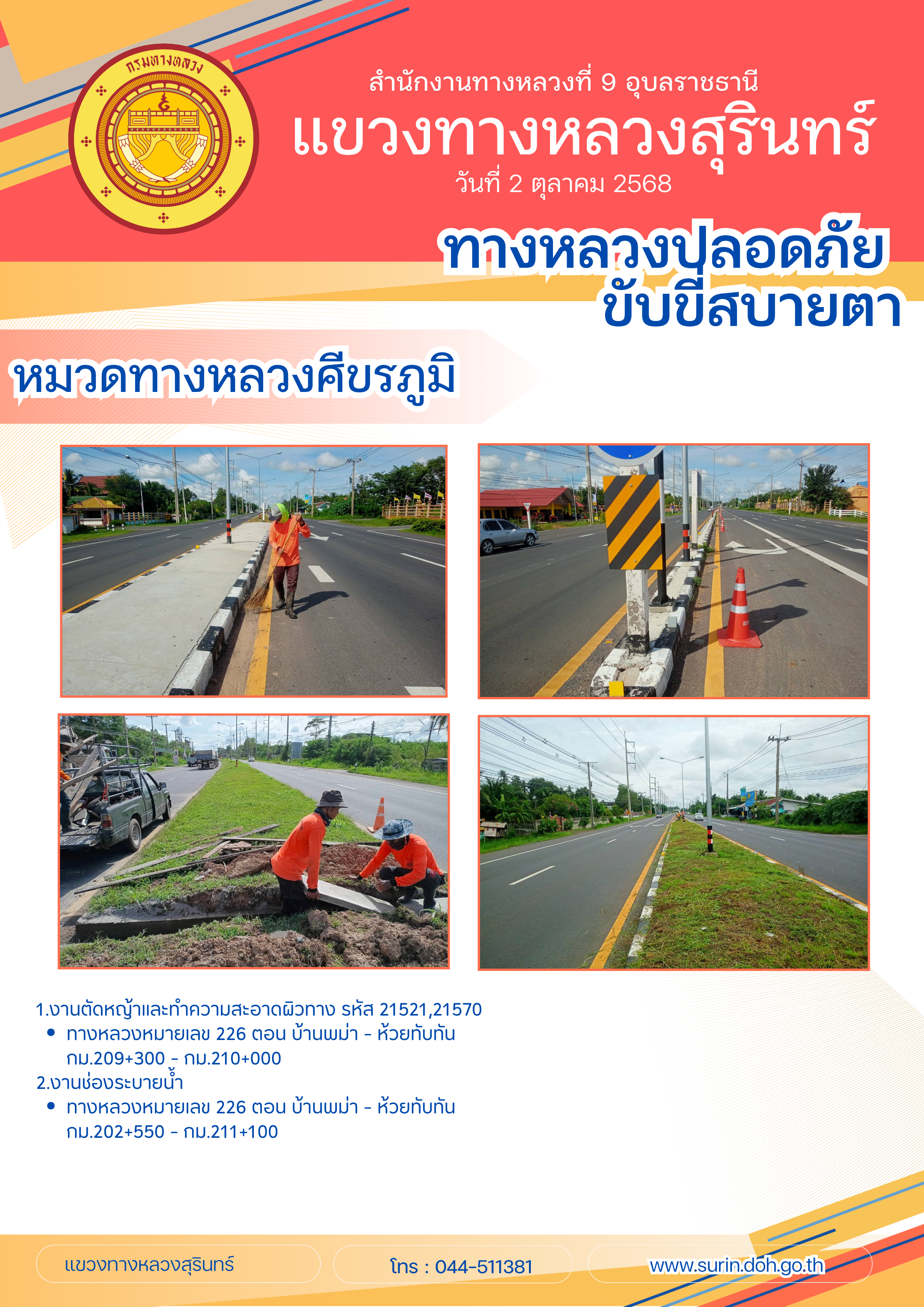 ทางหลวงปลอดภัย ขับขี่สบายตา 2 ตุลาคม 2568 |
