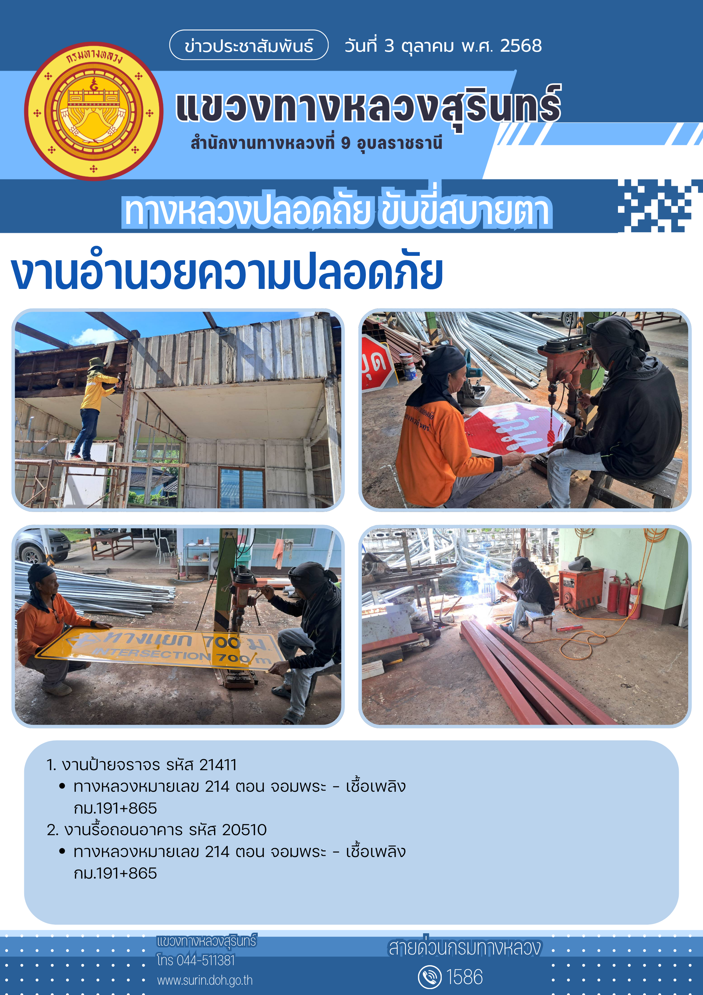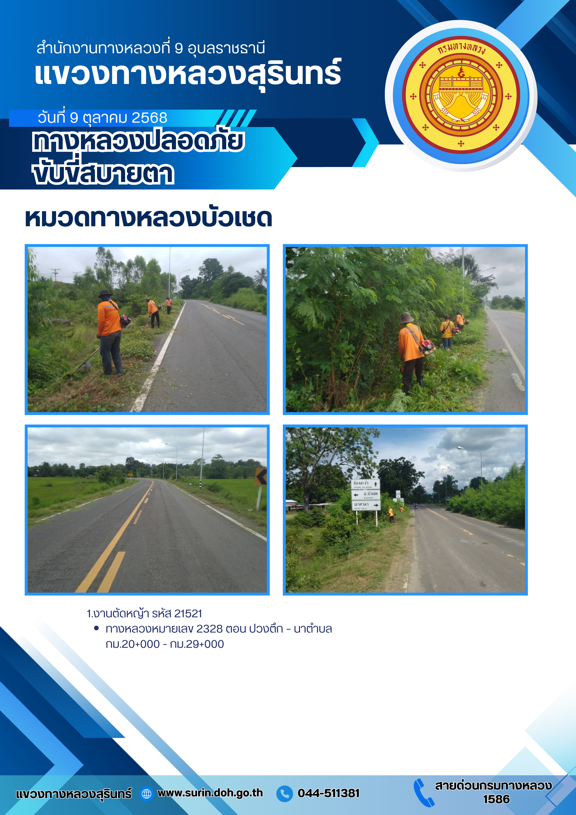 ทางหลวงปลอดภัย ขับขี่สบายตา 9 ตุลาคม 2568 |