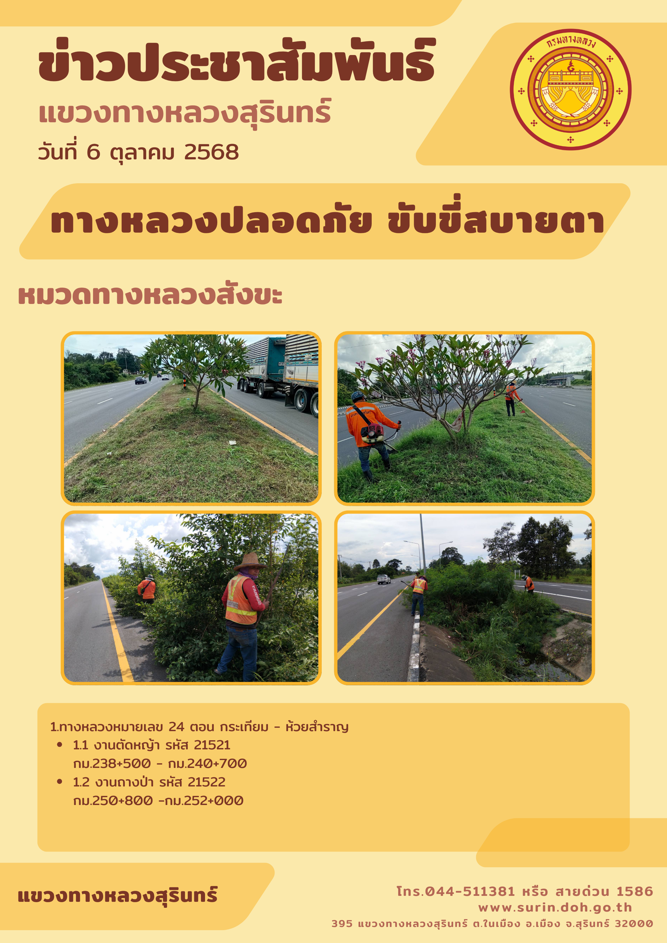 ทางหลวงปลอดภัย ขับขี่สบายตา 6 ตุลาคม 2568 |
