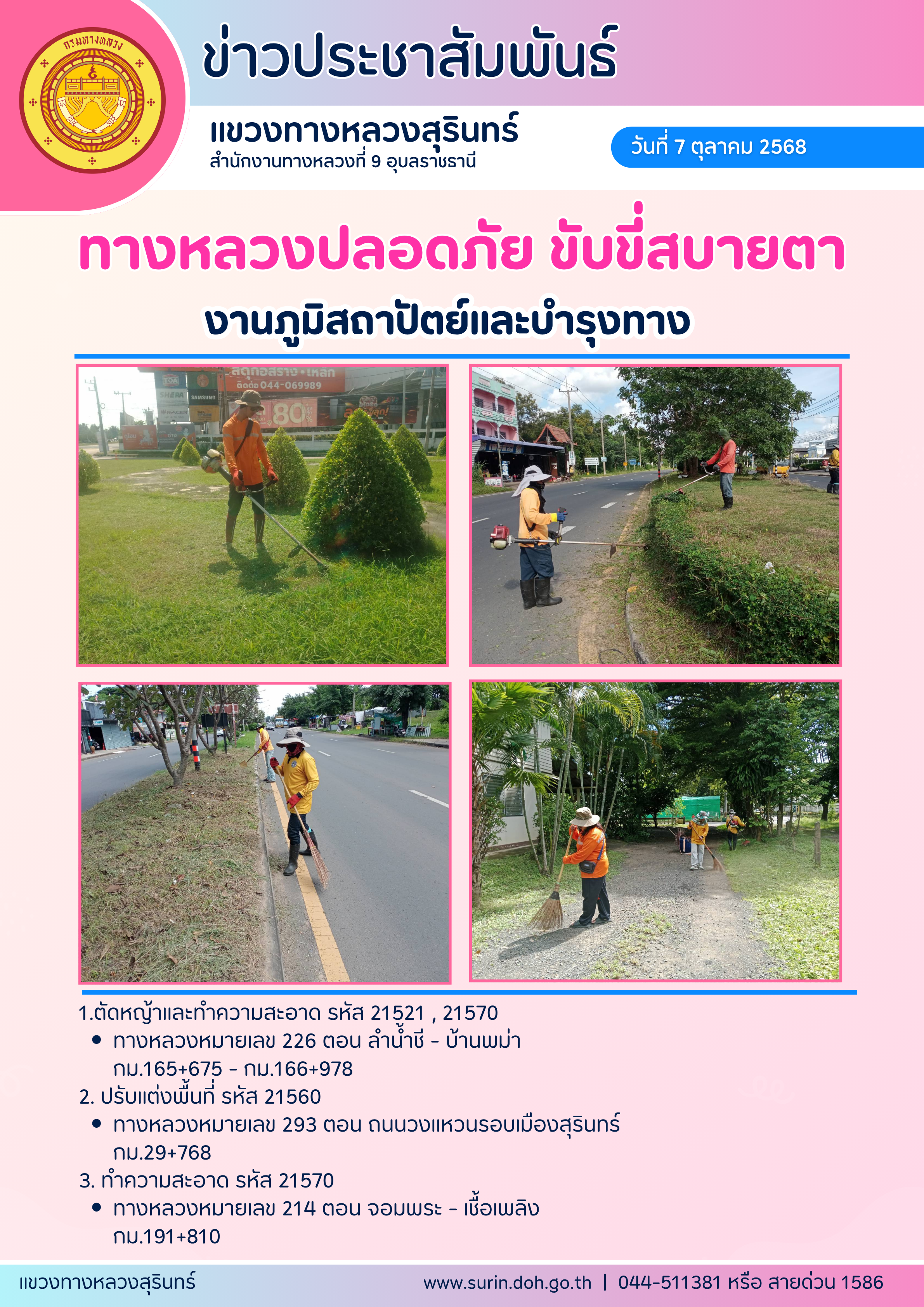 ทางหลวงปลอดภัย ขับขี่สบายตา 7 ตุลาคม 2568 |