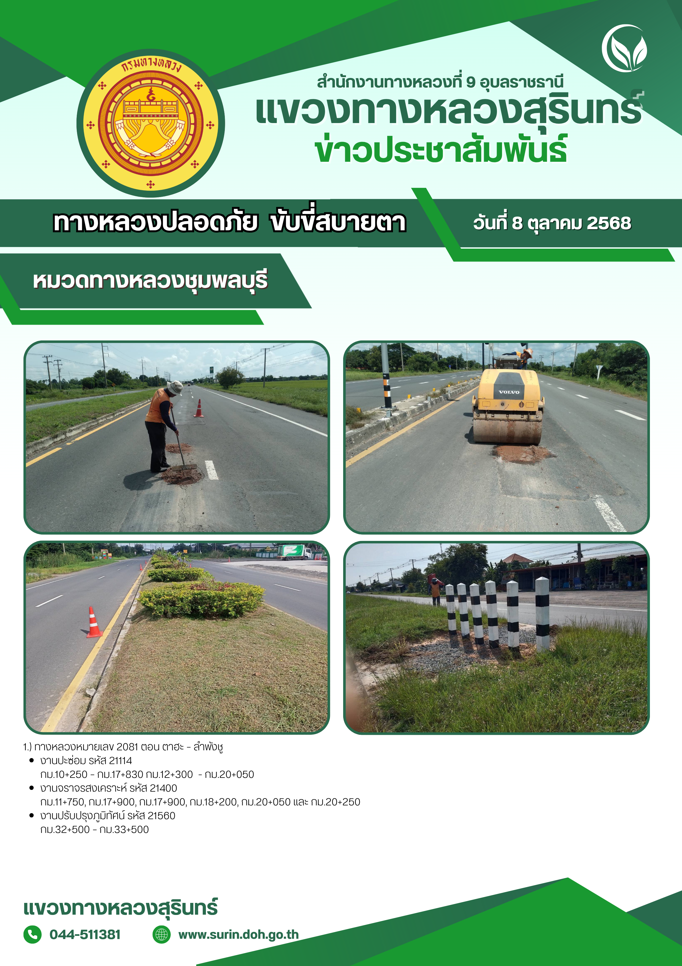 ทางหลวงปลอดภัย ขับขี่สบายตา 8 ตุลาคม 2568 |