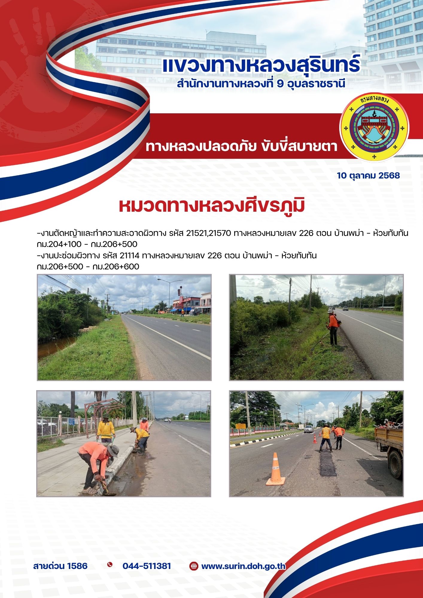 ทางหลวงปลอดภัย ขับขี่สบายตา 10 ตุลาคม 2568 |