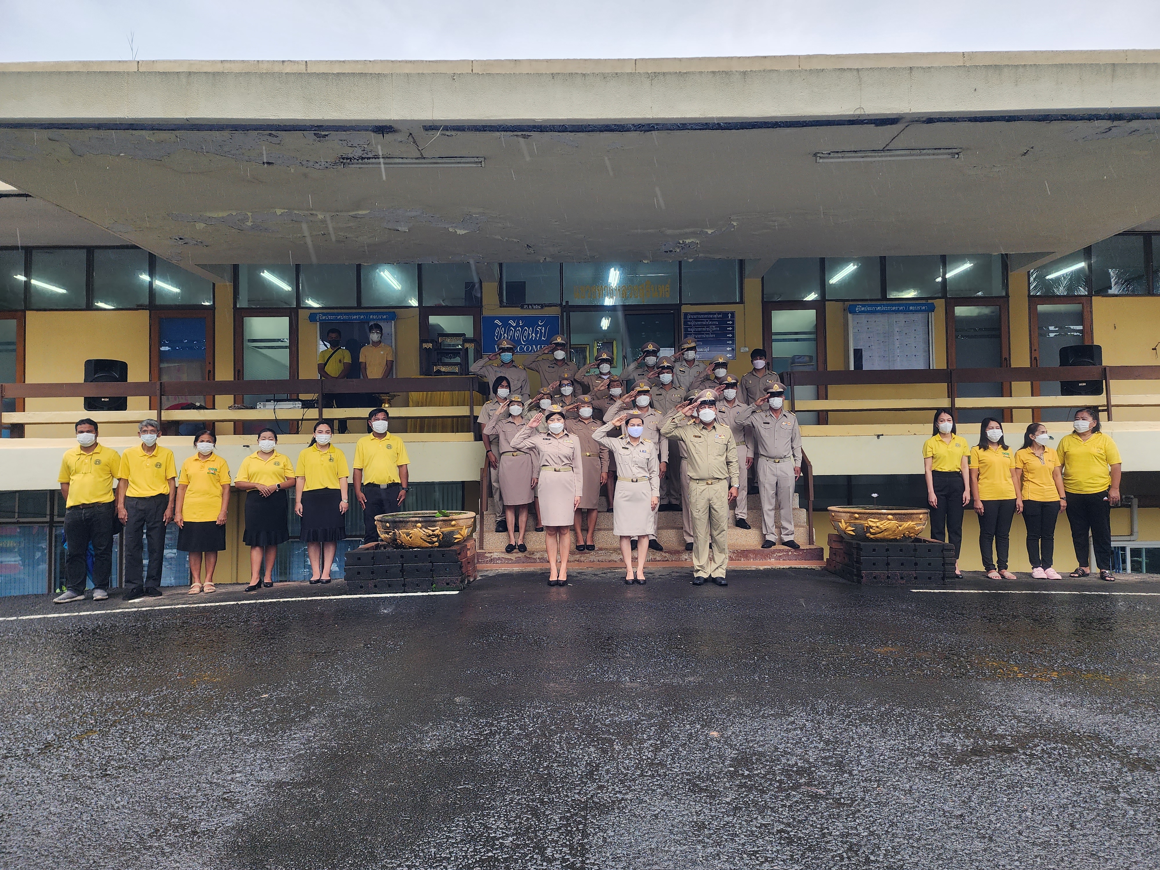 พร้อมด้วยหัวหน้าหน่วยงานในสังกัดฯ และเจ้าหน้าที่แขวงทางหลวงสุรินทร์ ร่วมกิจกรรมเคารพธงชาติ