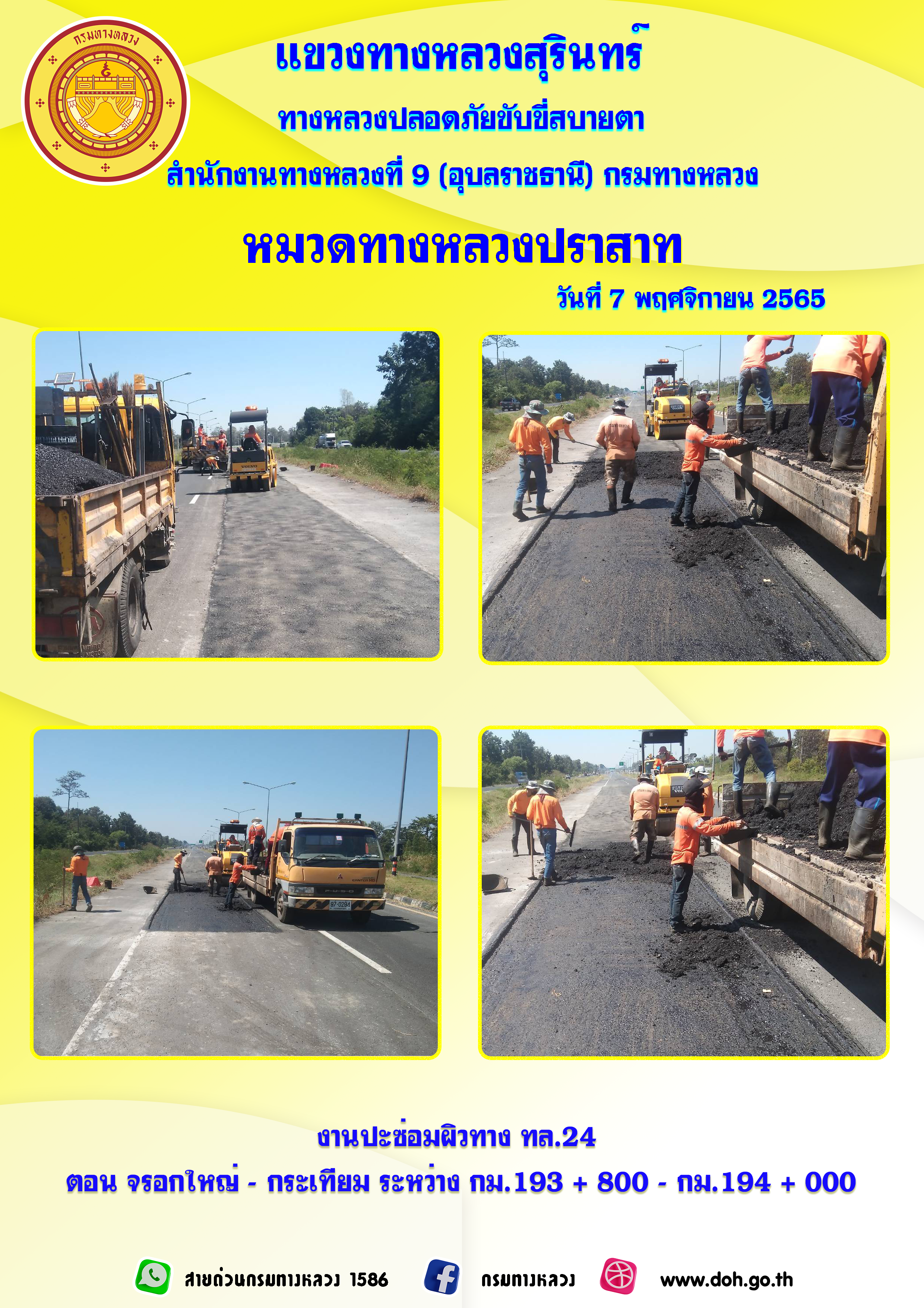 ทางหลวงปลอยภัย ขับขี่สบายตา 7 พฤศจิกายน 2565
