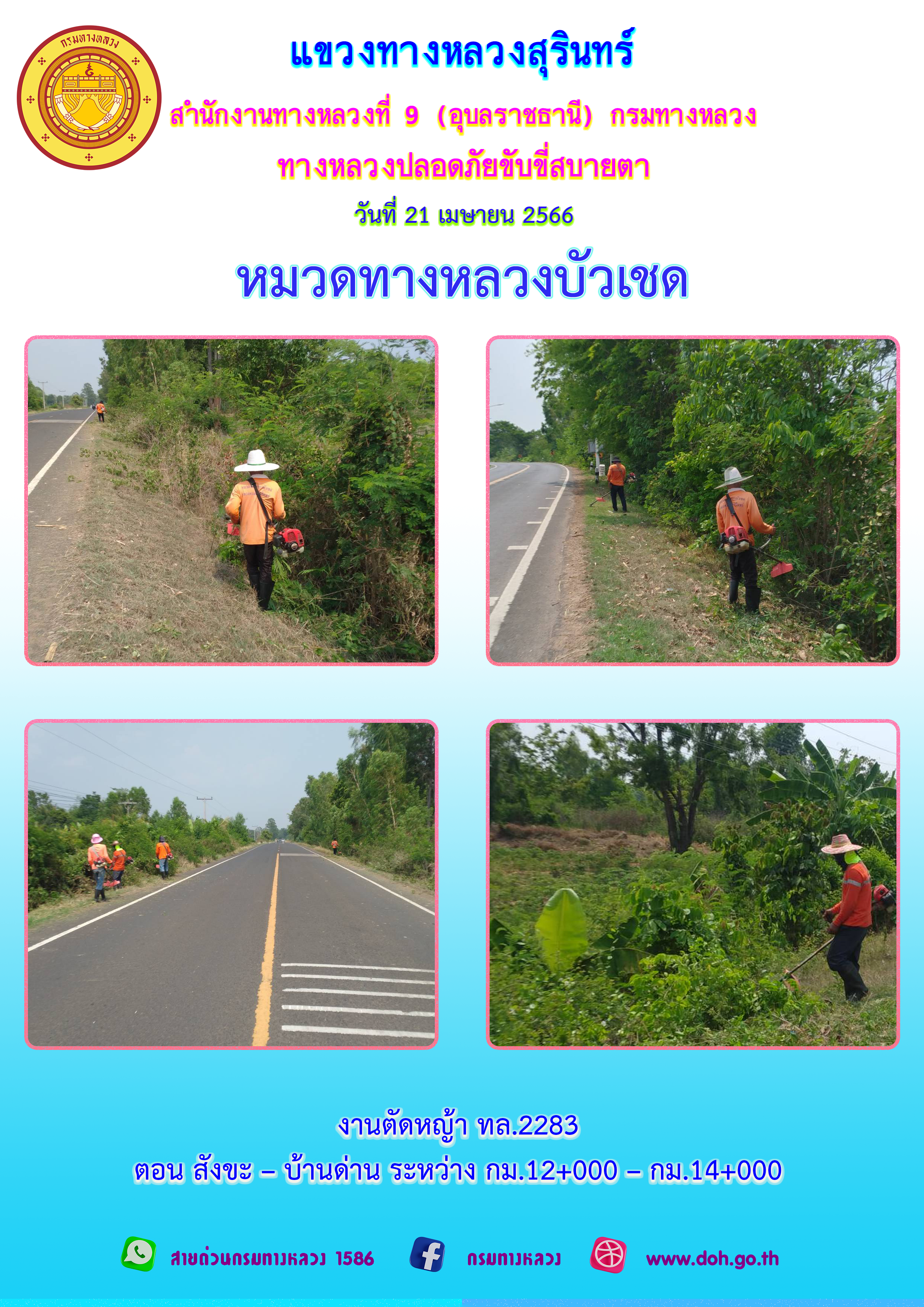 วิสัยทัศน์ : พัฒนาทางหลวงให้ได้มาตรฐาน มุ่งเน้นงานบริการประชาชน สร้างผลงานจากกิจกรรม 5 ส.