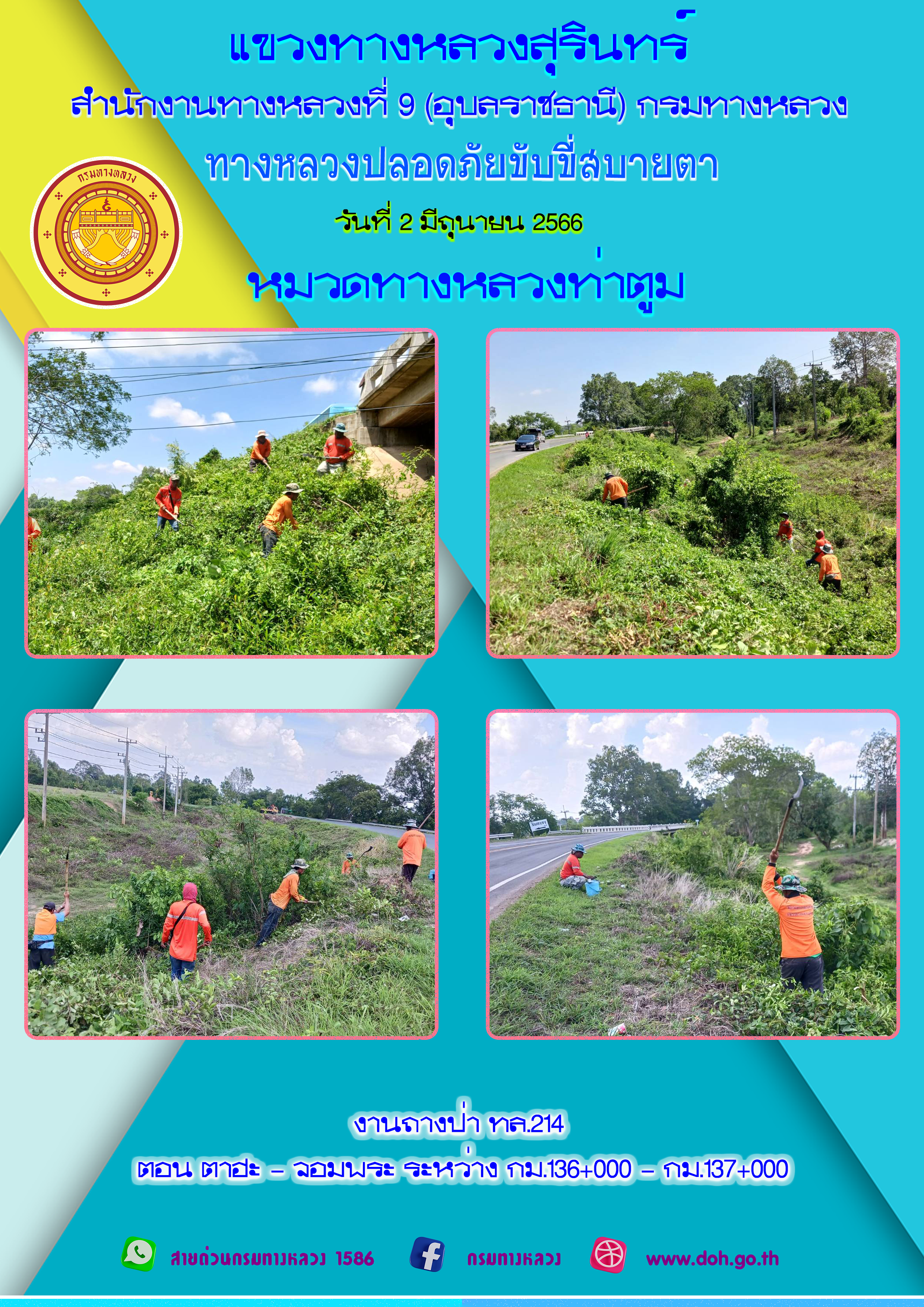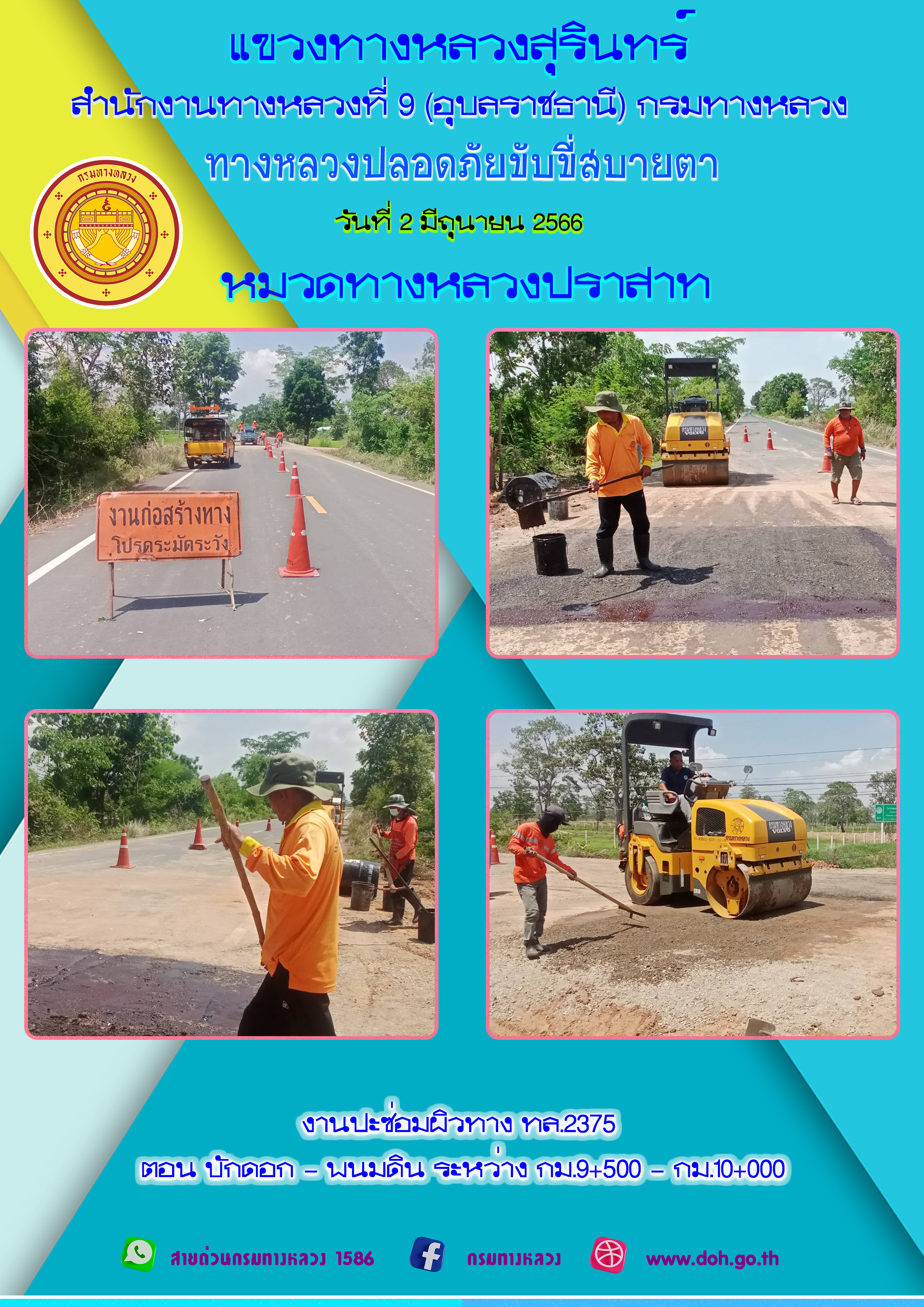 ข้อมูลภาพกิจกรรม : ทางหลวงปลอยภัย ขับขี่สบายตา 2 มิถุนายน 2566