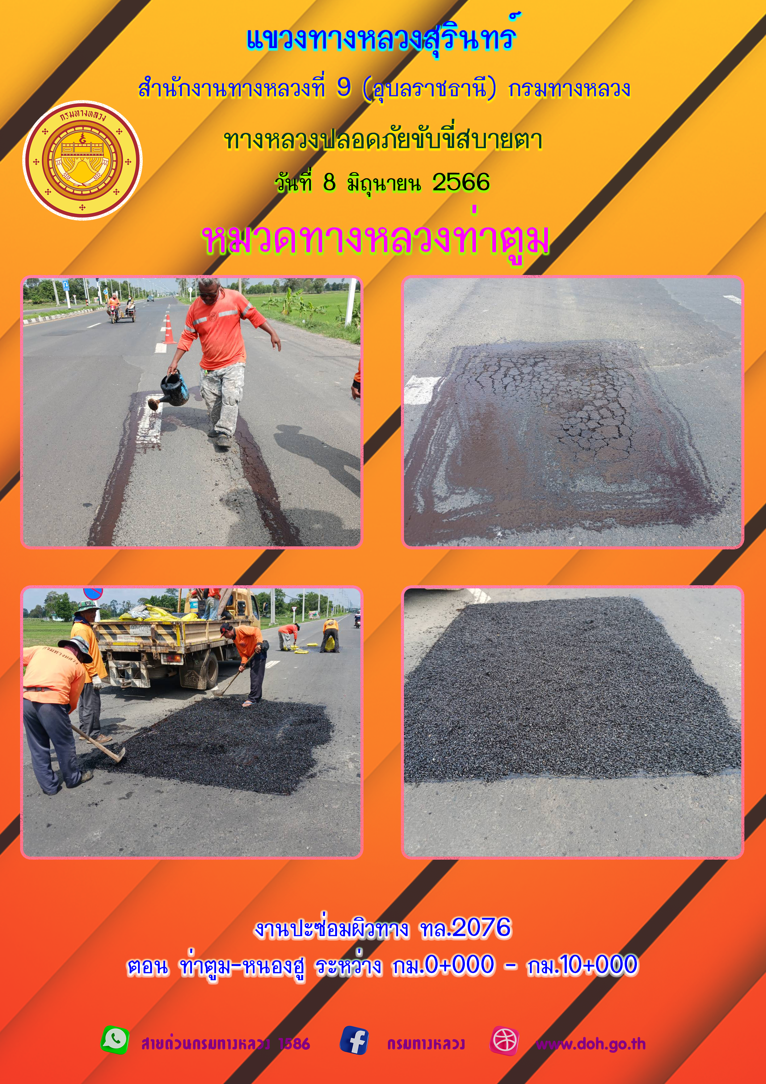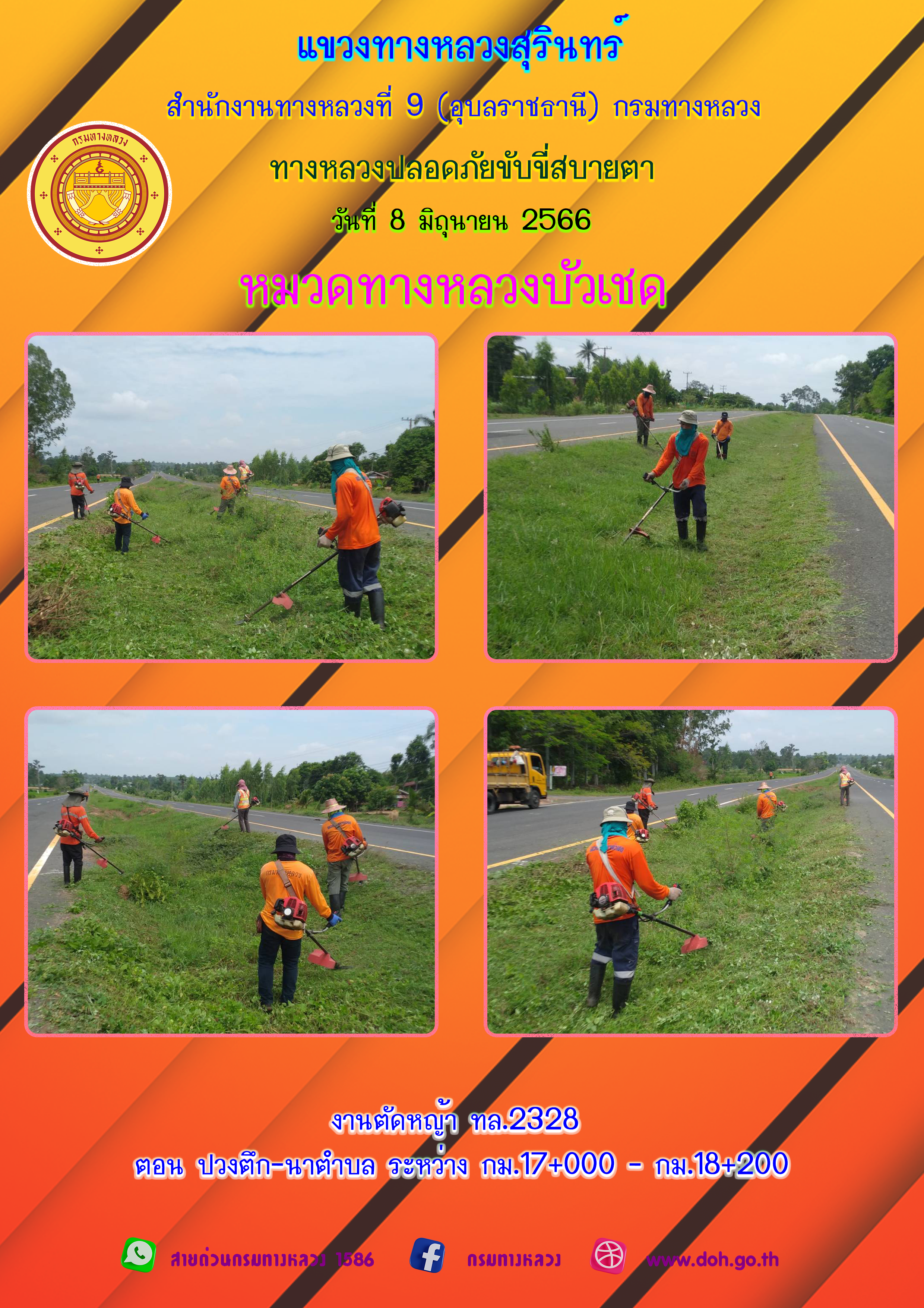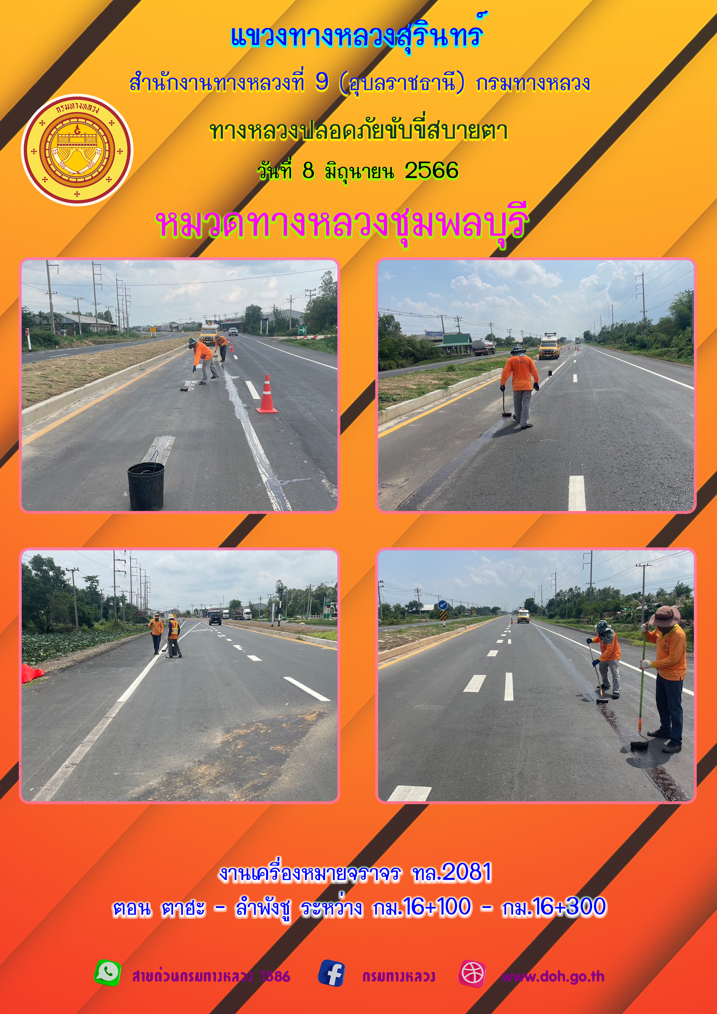ข้อมูลภาพกิจกรรม : ทางหลวงปลอยภัย ขับขี่สบายตา 8 มิถุนายน 2566