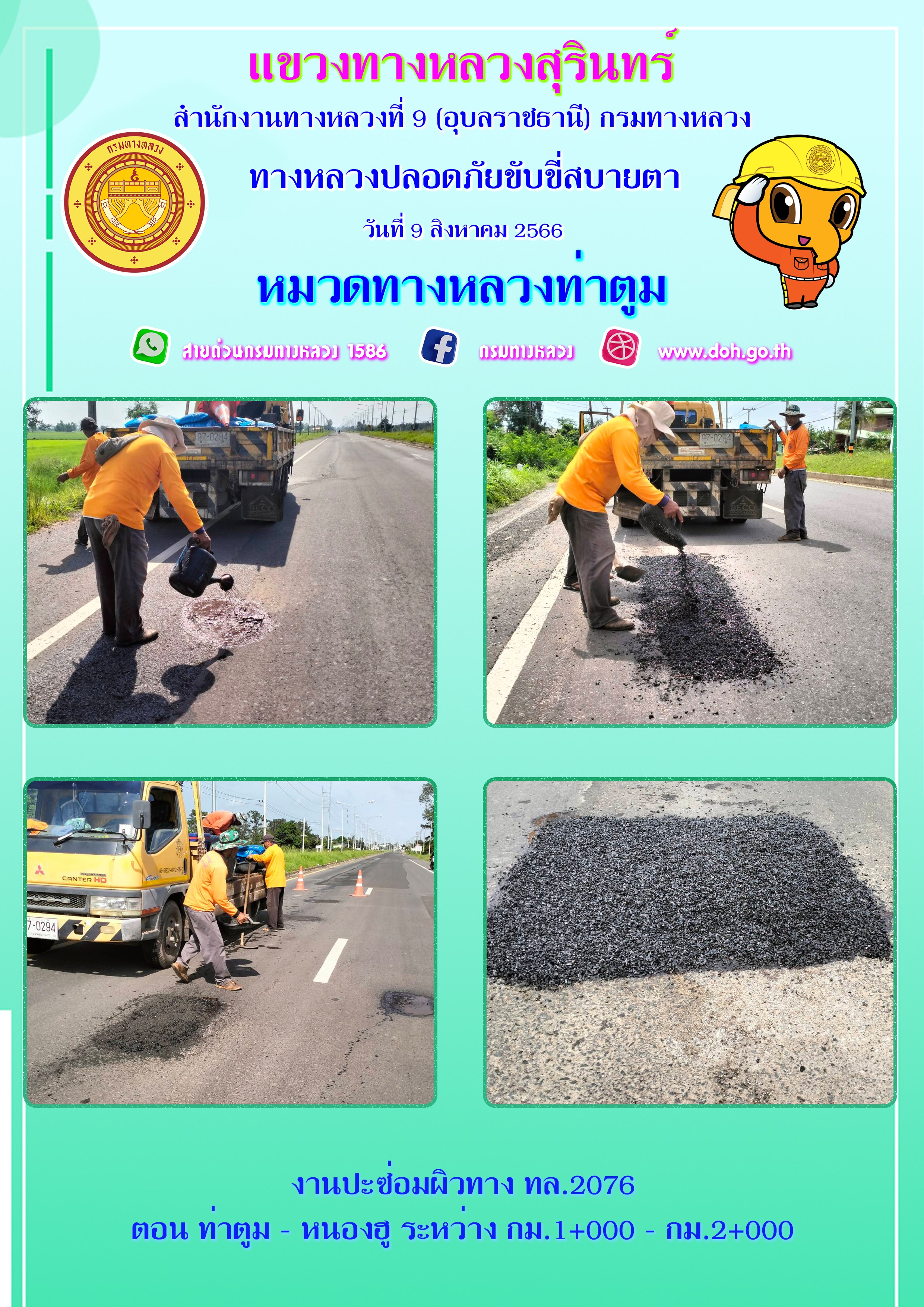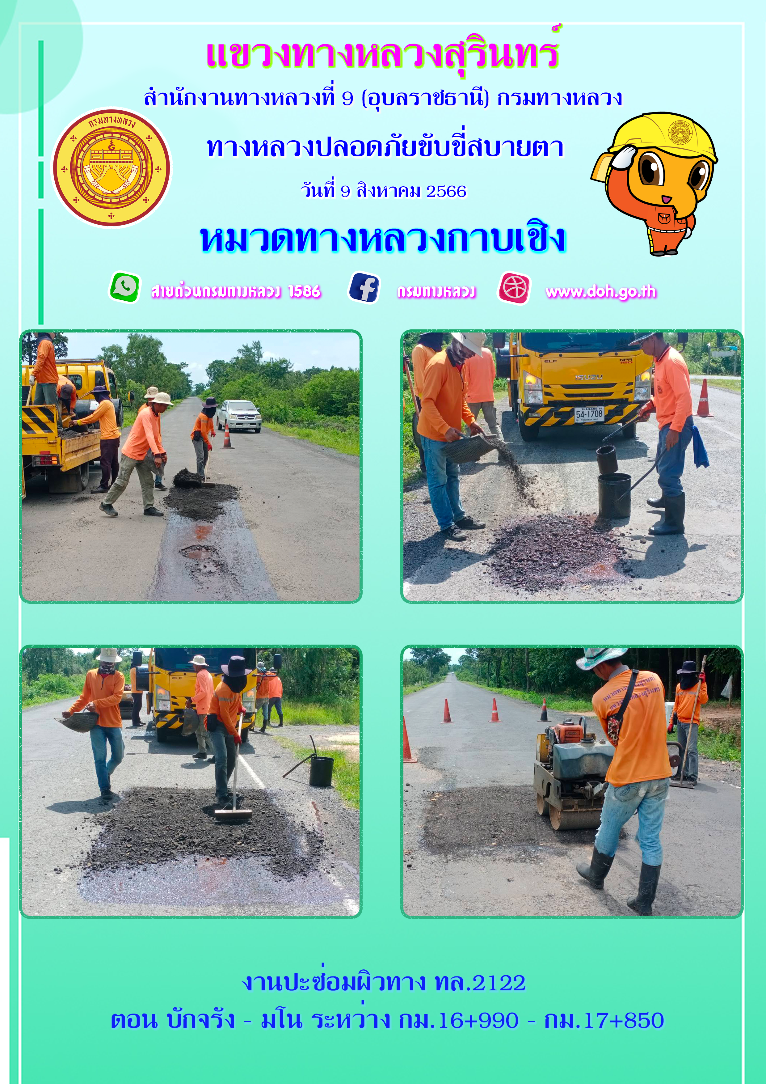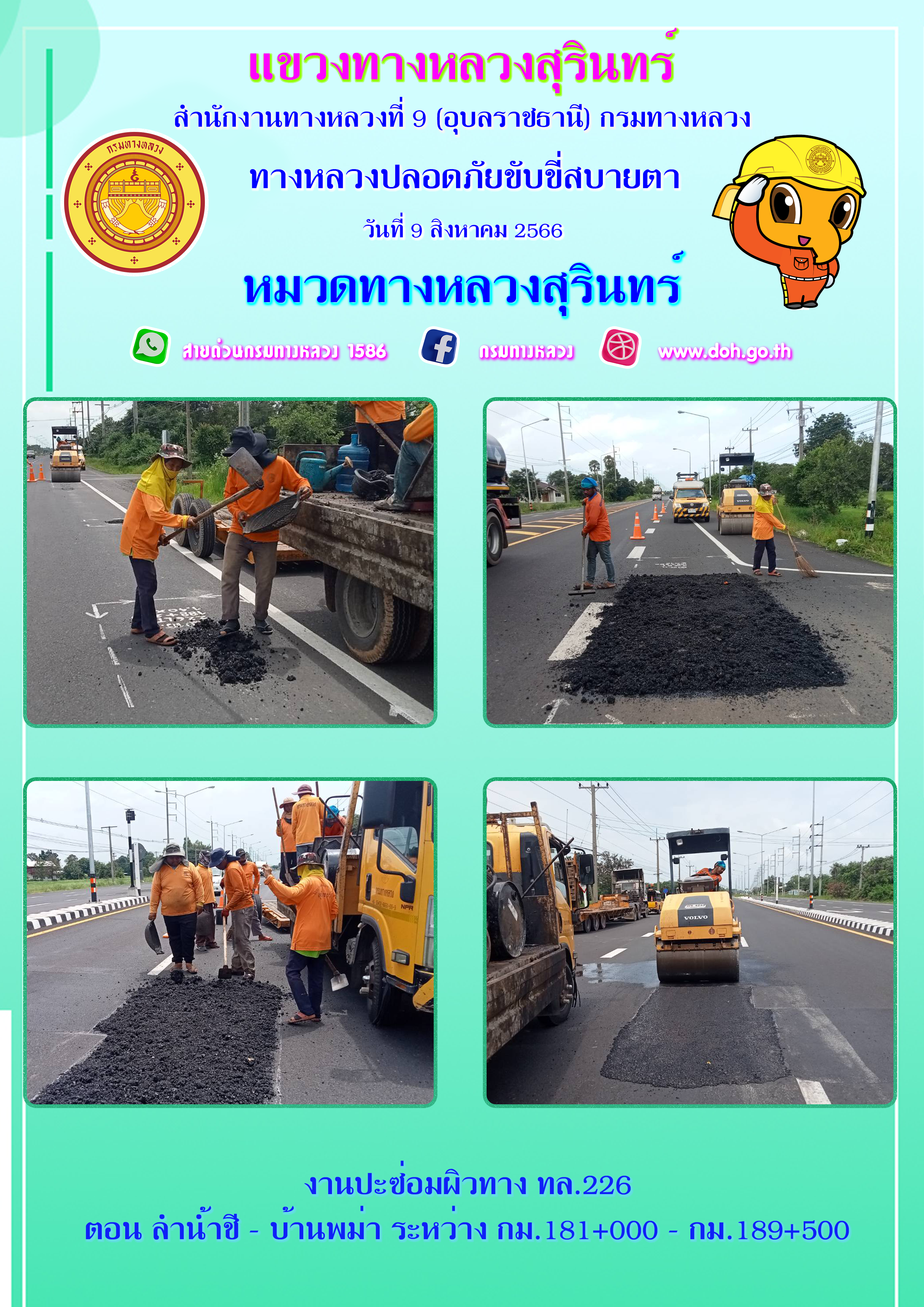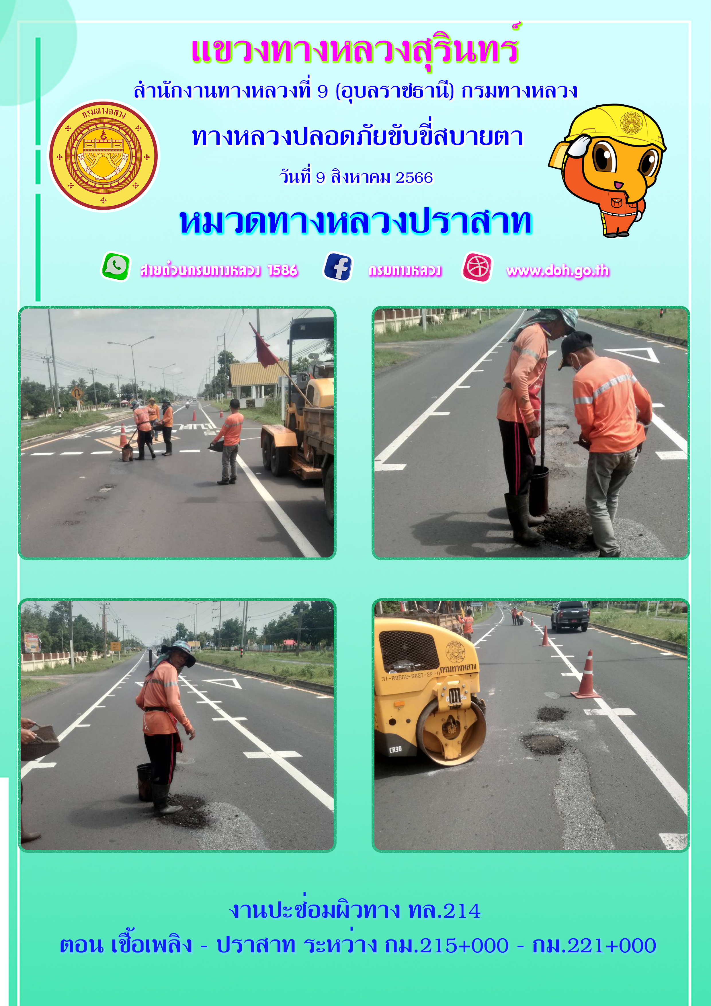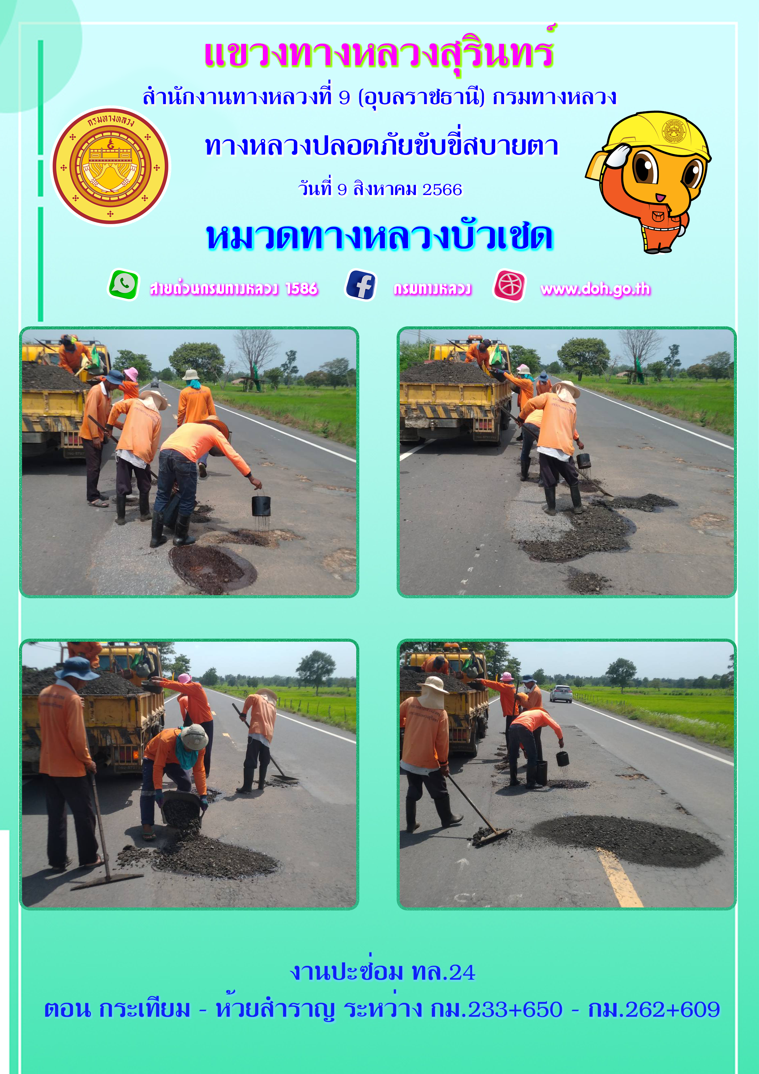 ข้อมูลภาพกิจกรรม : ทางหลวงปลอยภัย ขับขี่สบายตา 9 สิงหาคม 2566
